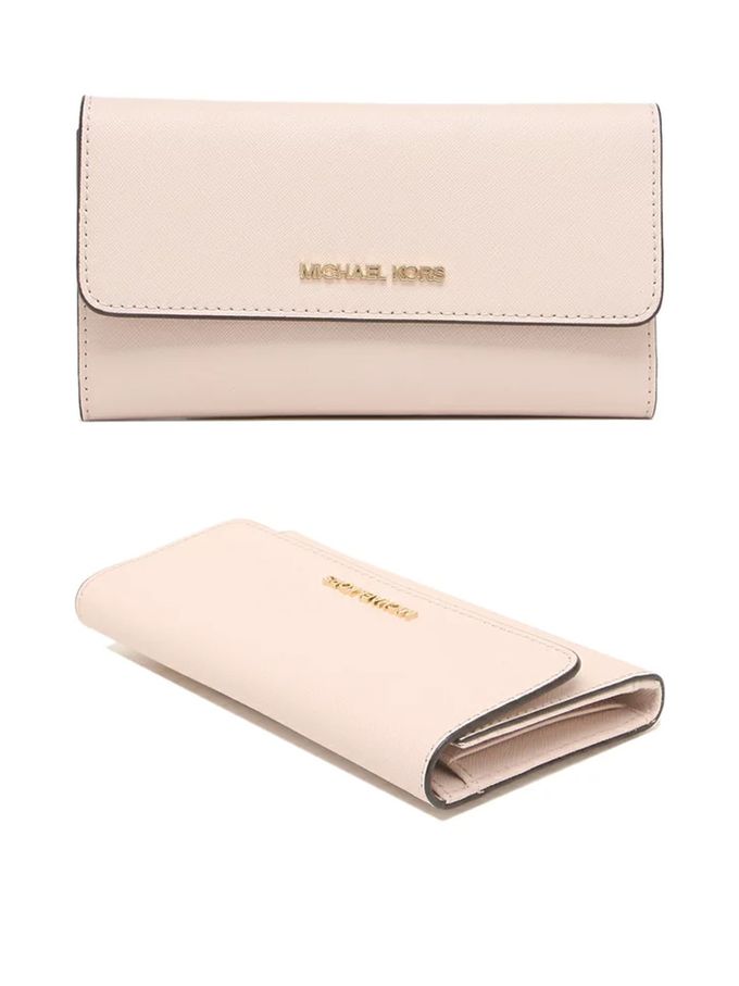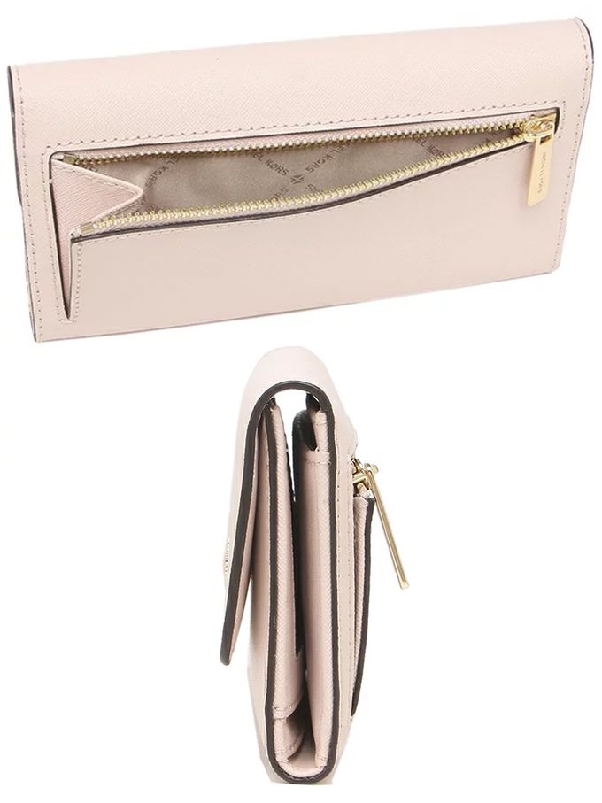 掀蓋皮革拉鍊三折長夾 (粉紅色)