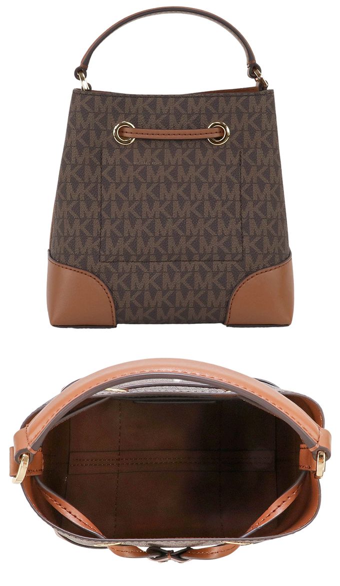 滿版LOGO拼接皮革水桶包 (咖駝)