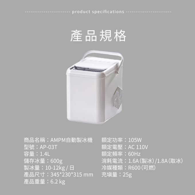 消耗電流:1.6A(製冰) / 1.8A(取冰)