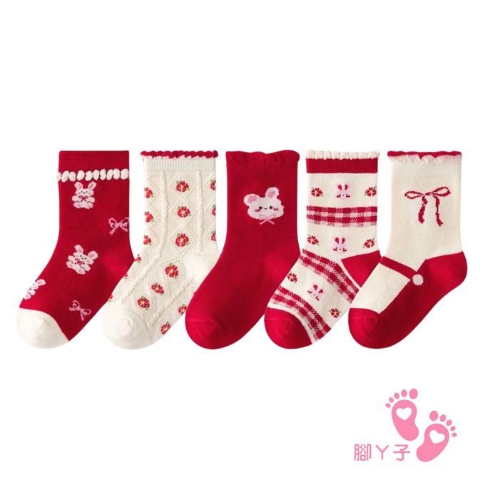 腳ㄚ子 - 幼/兒童棉質中筒襪 童襪 襪子 棉襪 兒童襪-紅兔花園