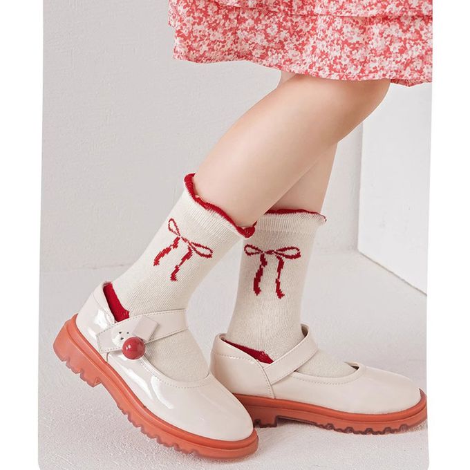 腳ㄚ子 - 幼/兒童棉質中筒襪 童襪 襪子 棉襪 兒童襪-緋紅花舞
