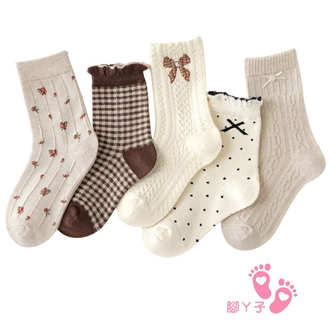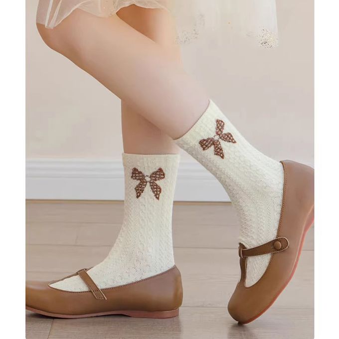 腳ㄚ子 - 幼/兒童棉質中筒襪 童襪 襪子 棉襪 兒童襪-米色蝴蝶結