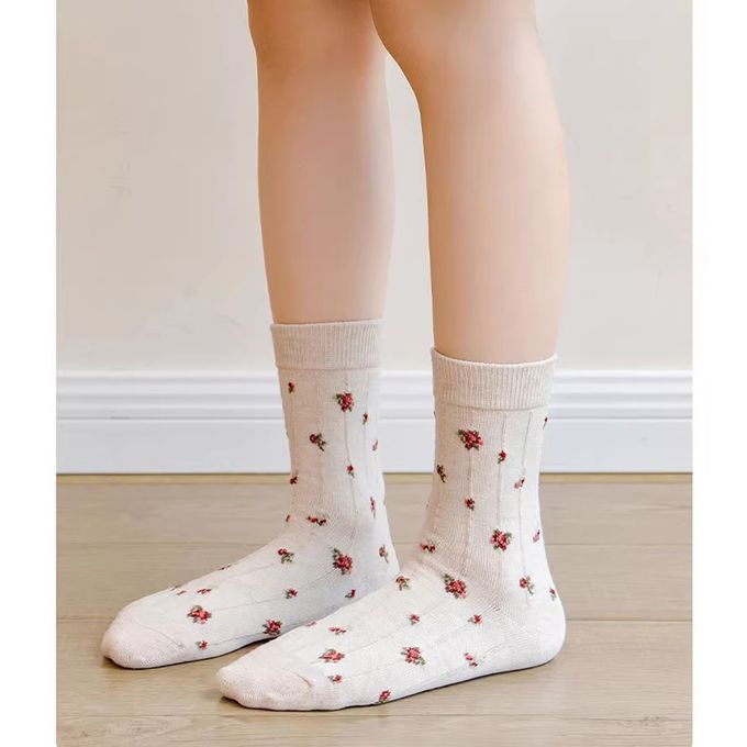 腳ㄚ子 - 幼/兒童棉質中筒襪 童襪 襪子 棉襪 兒童襪-緋紅花舞