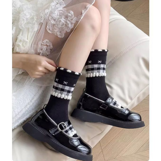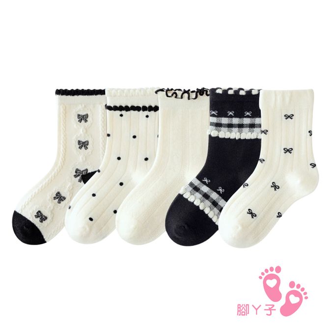 腳ㄚ子 - 幼/兒童棉質中筒襪 童襪 襪子 棉襪 兒童襪-黑白蝴蝶結