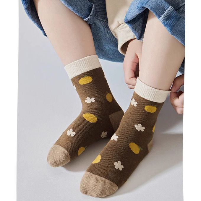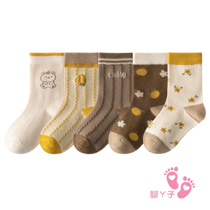 腳ㄚ子 - 幼/兒童棉質中筒襪 童襪 襪子 棉襪 兒童襪-黃色酢醬草
