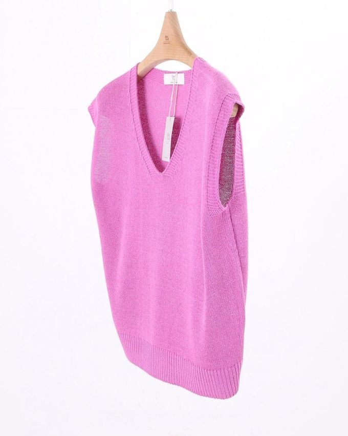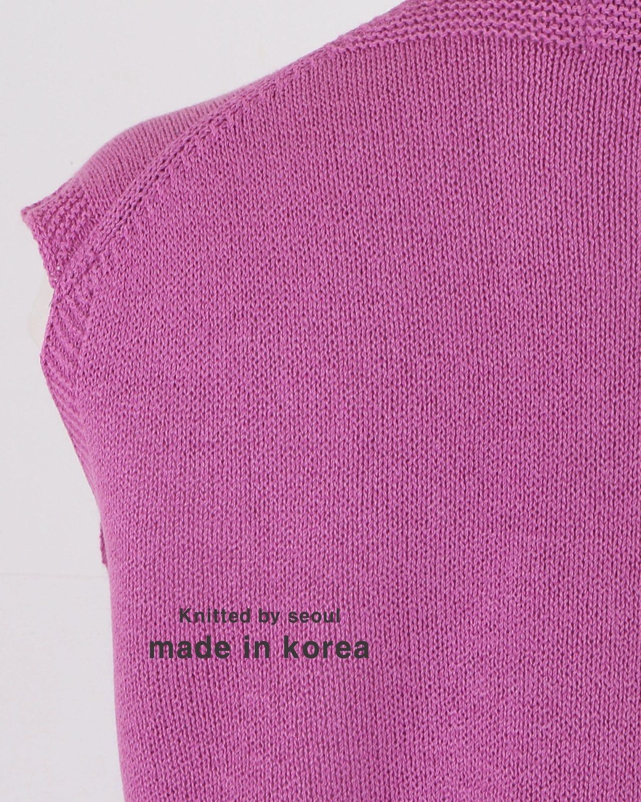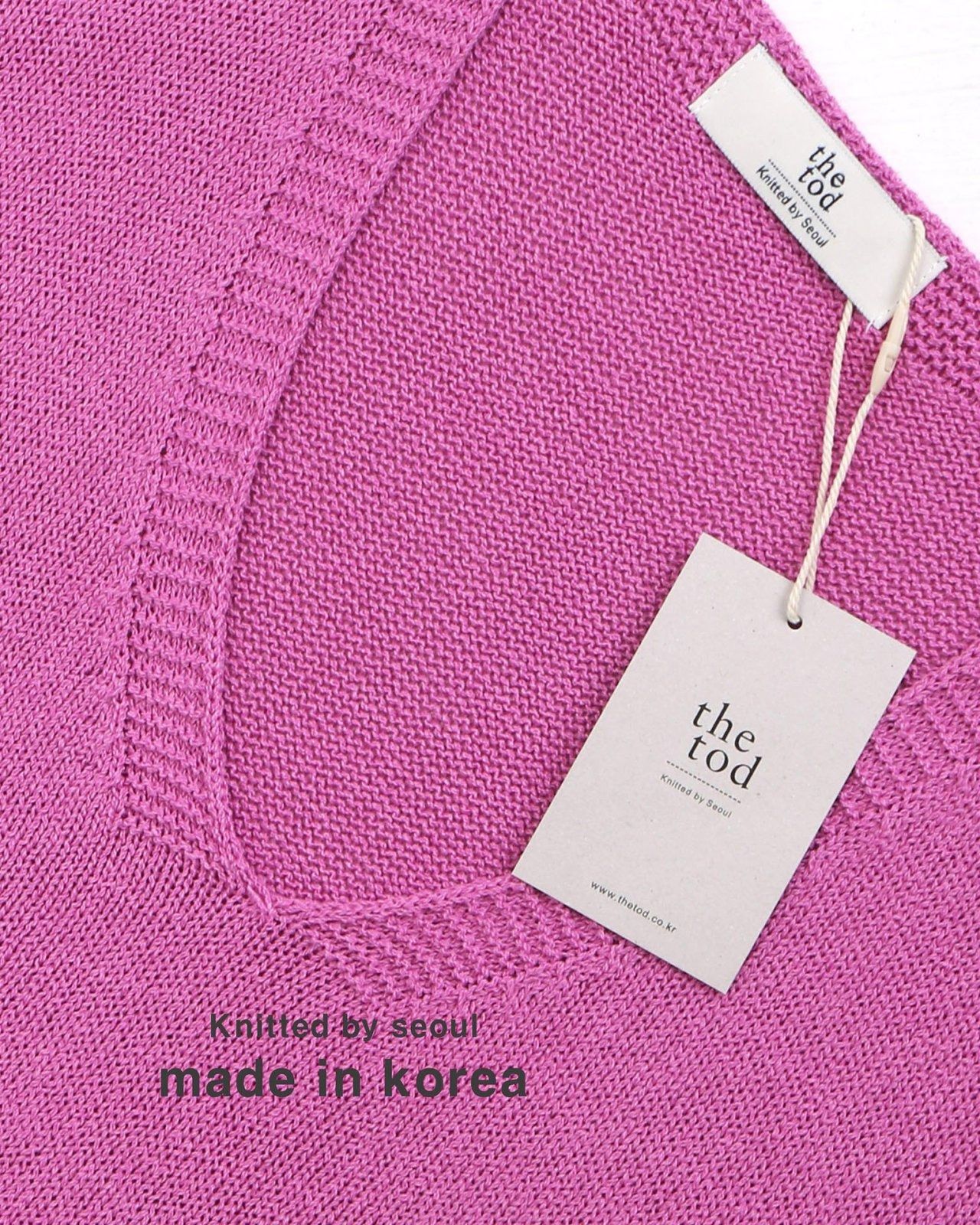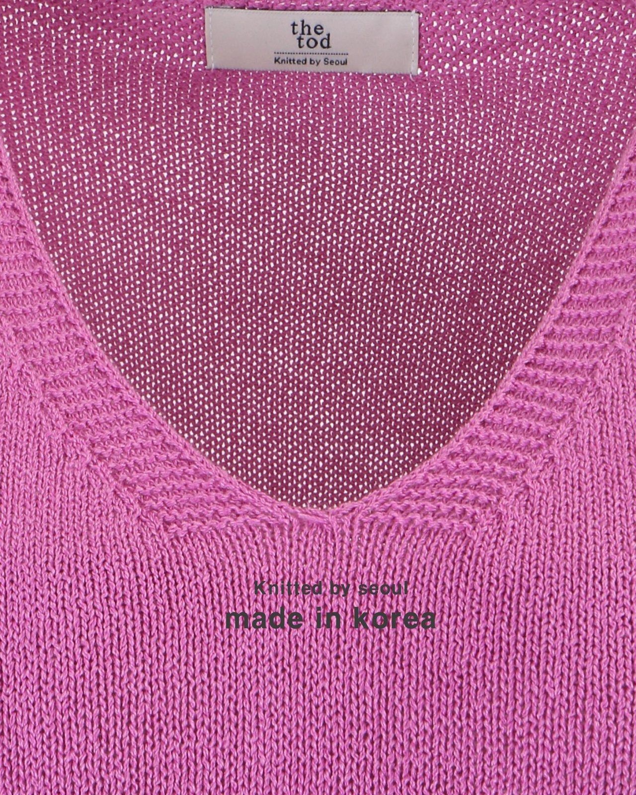 韓國女裝連線 - 韓製 夏日棉麻V領蓋袖針織上衣-桃紫 (FREE)
