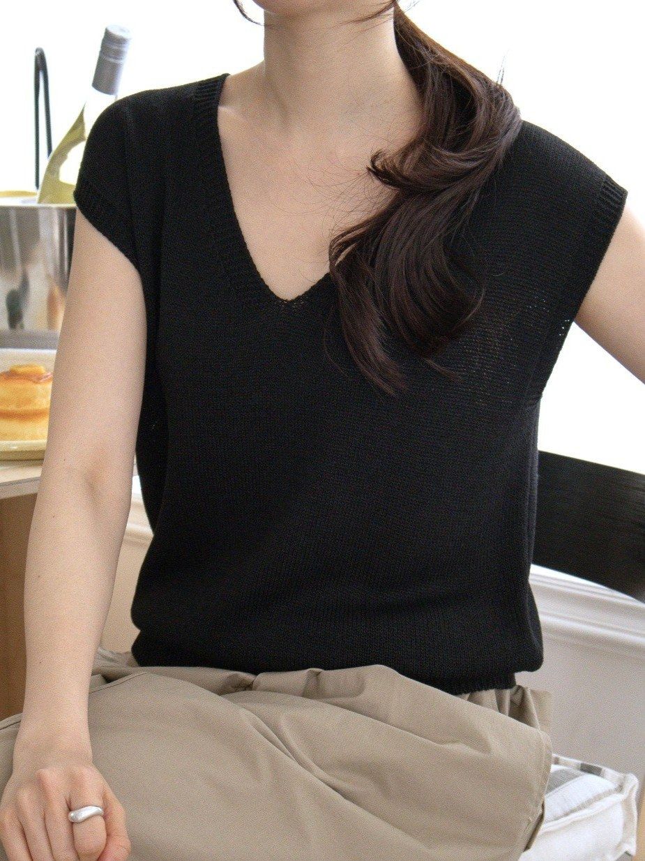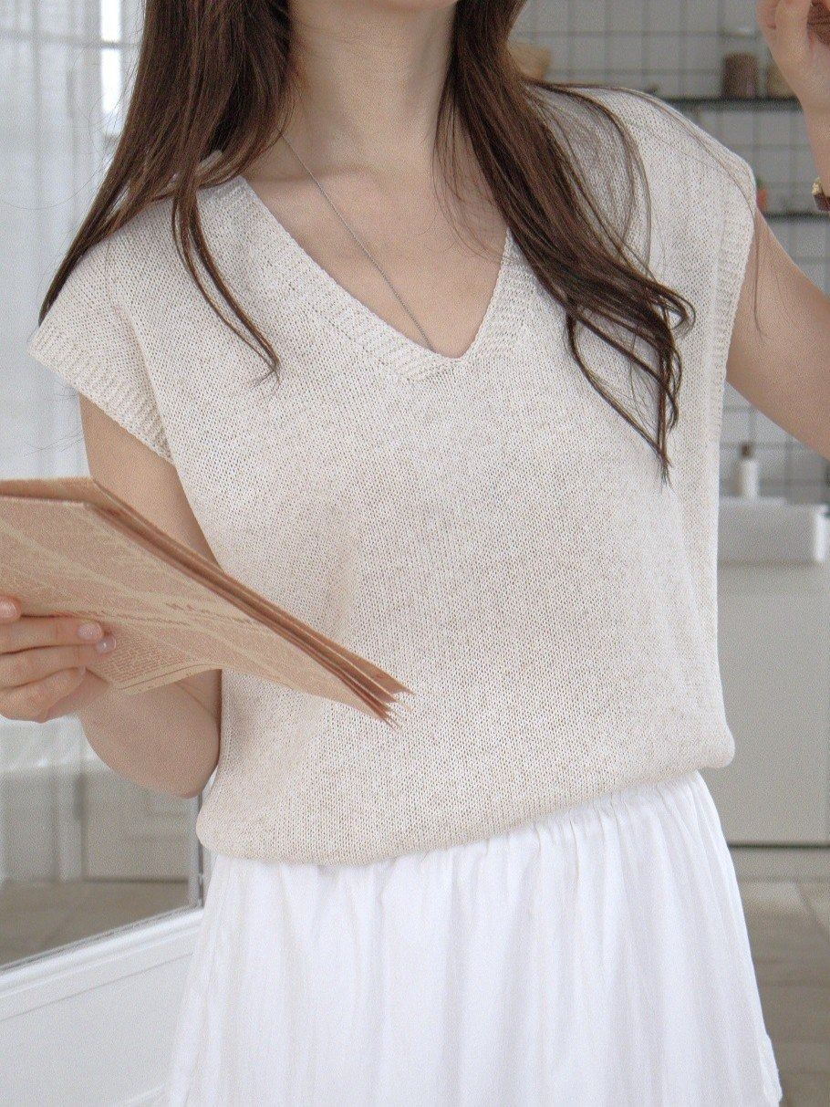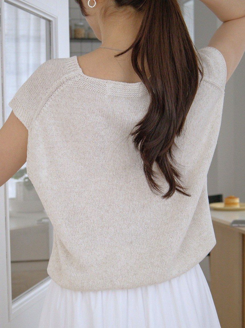 • 品名:韓製 夏日棉麻V領蓋袖針織上衣