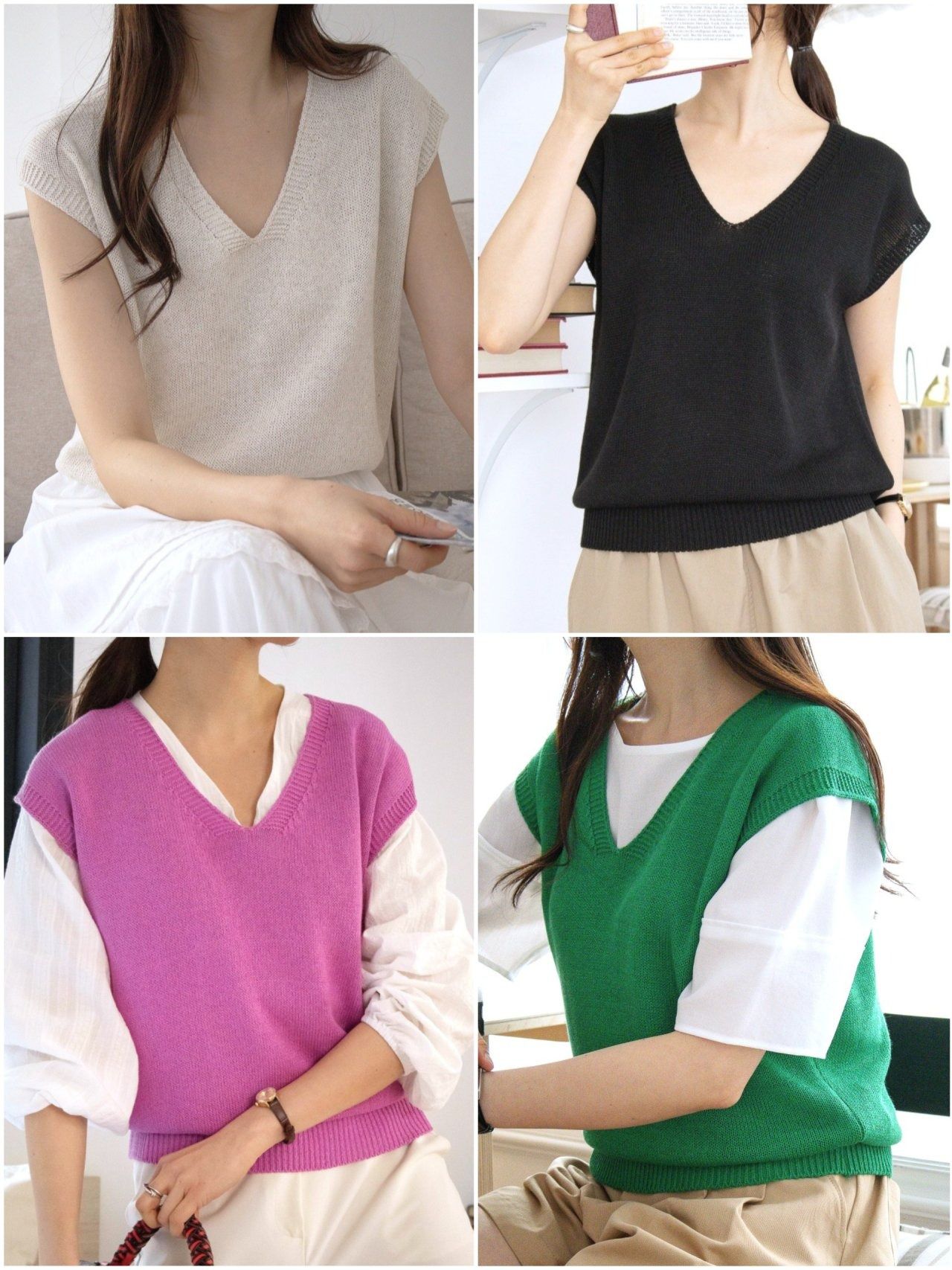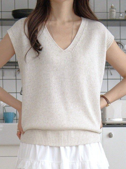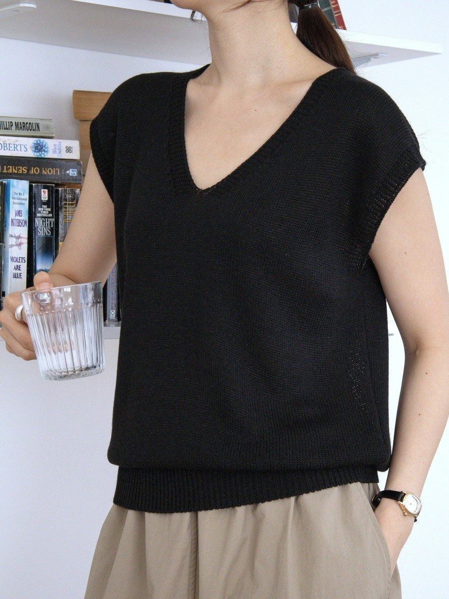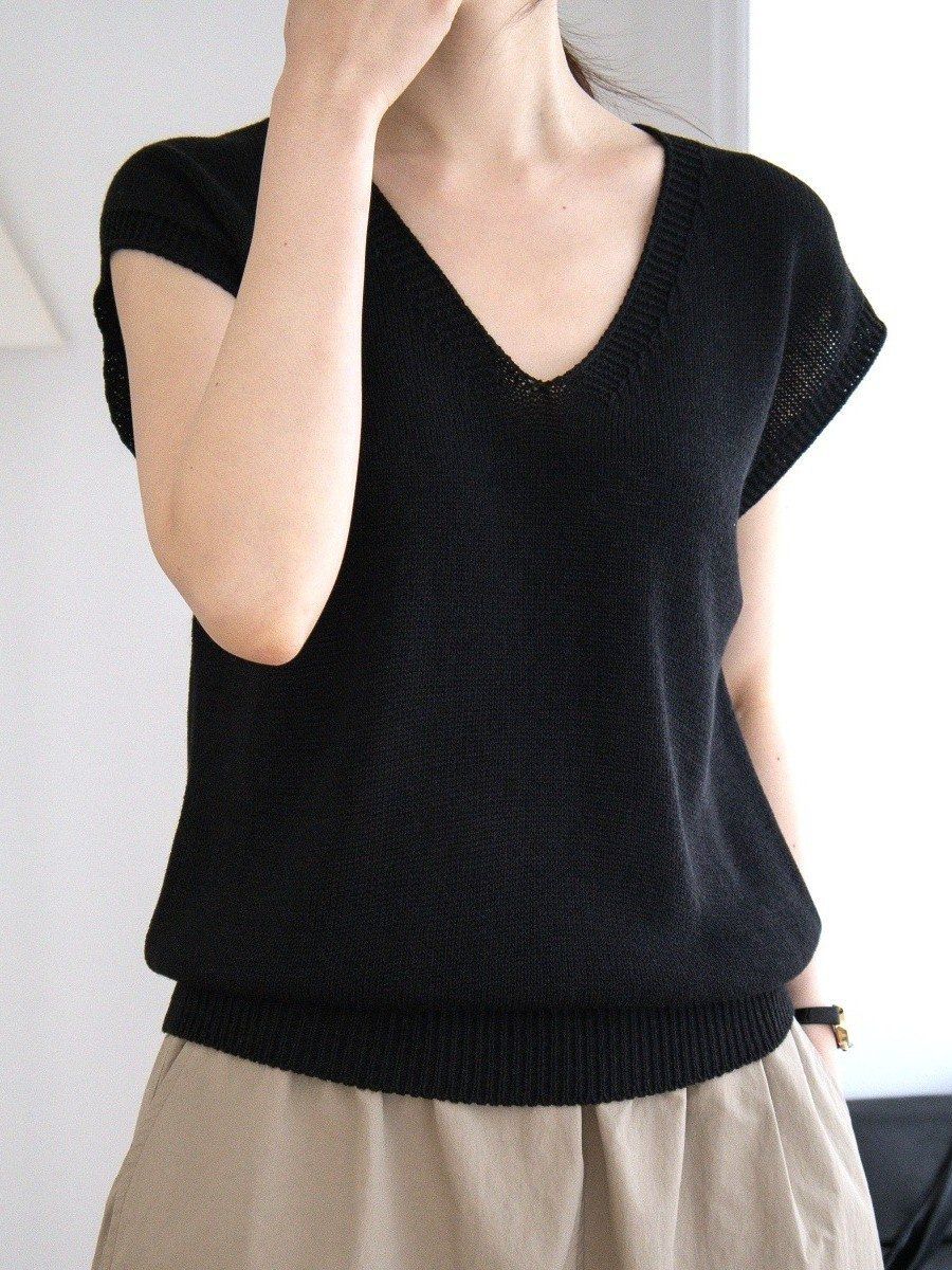 • 品名:韓製 夏日棉麻V領蓋袖針織上衣