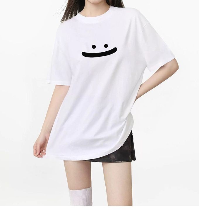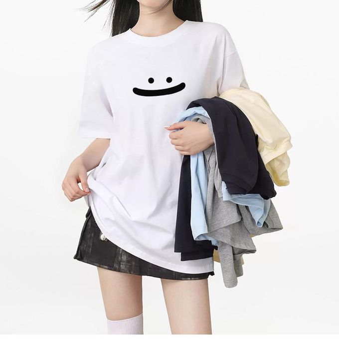 純棉寬版印花T恤-大笑臉-粉色