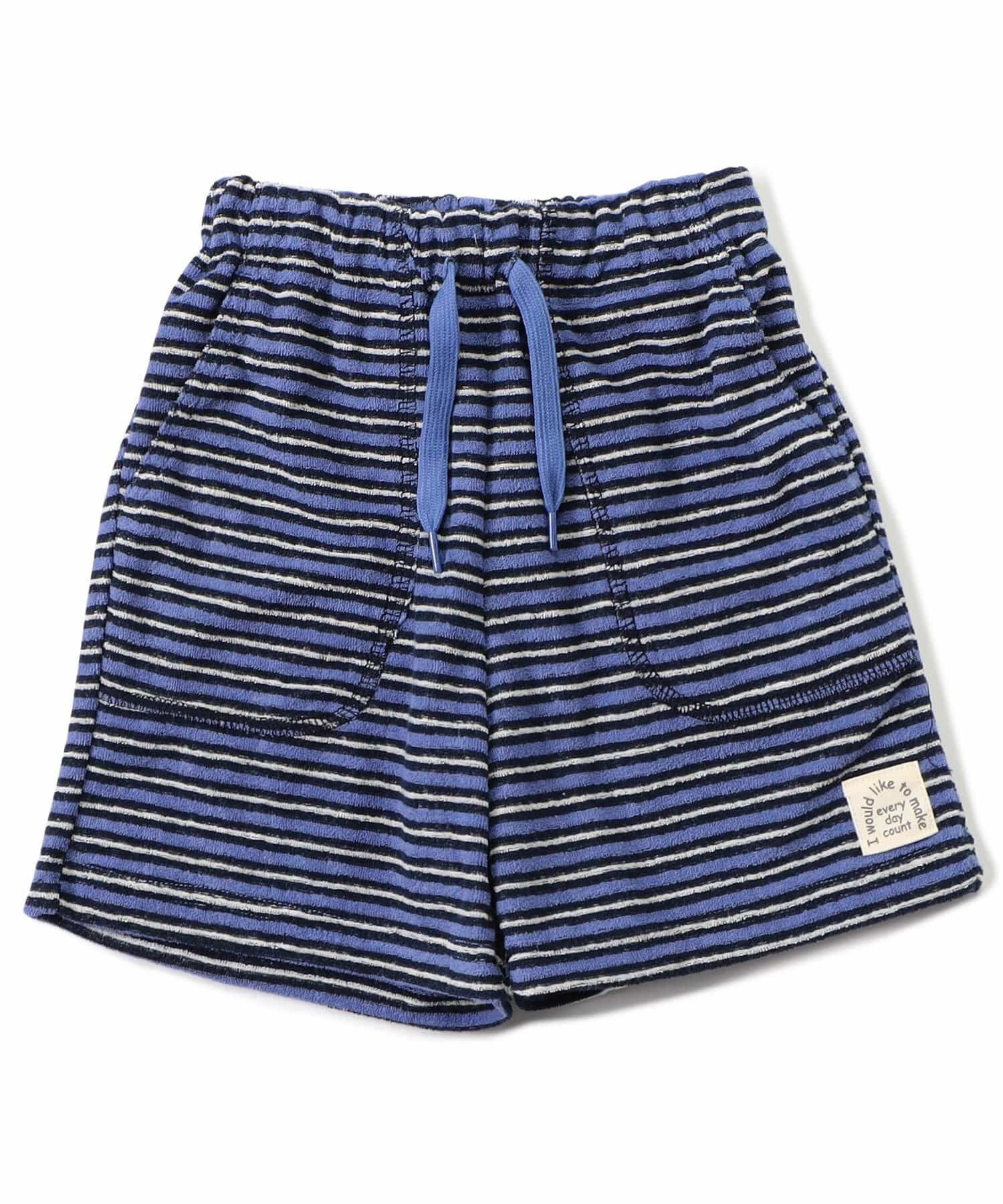 日本 BREEZE - 柔軟毛巾感鬆緊短褲-條紋-藍x黑