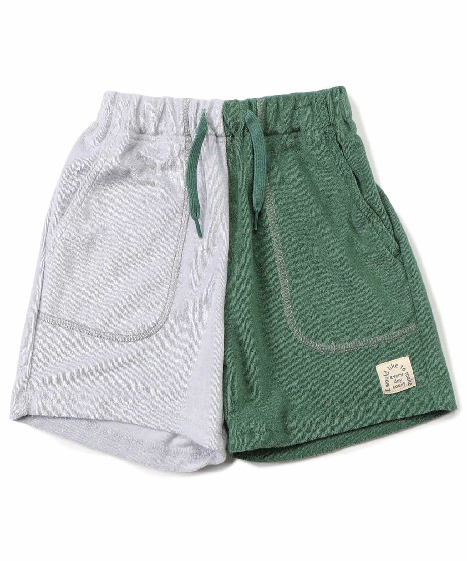 日本 BREEZE - 柔軟毛巾感鬆緊短褲-條紋-水藍x綠