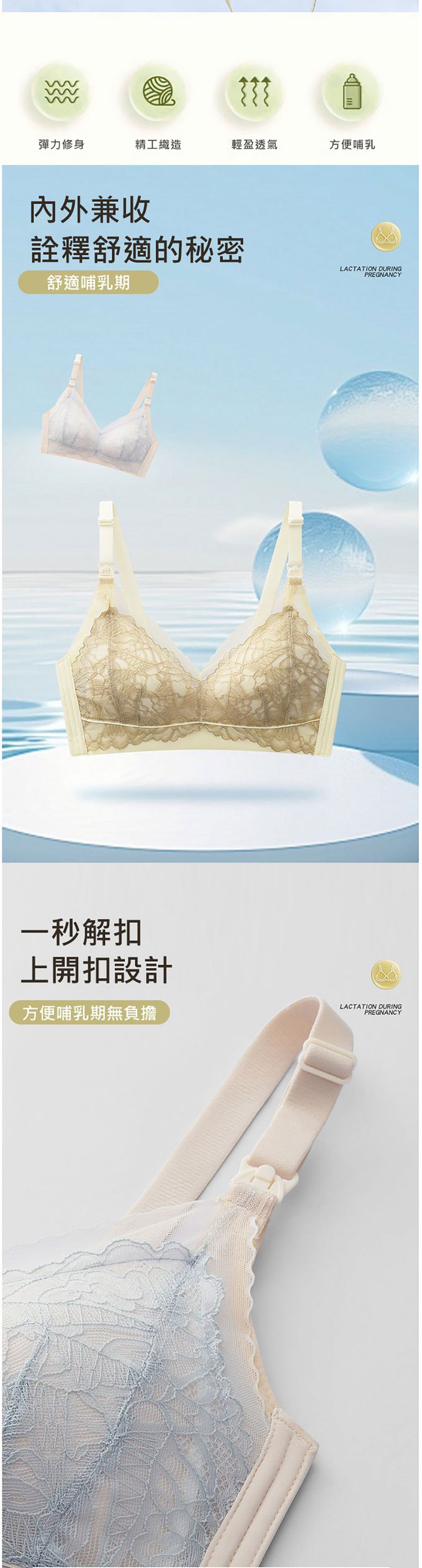 • 品名:法式蕾絲內衣 上開釦哺乳內衣 無鋼圈內衣 孕婦內衣