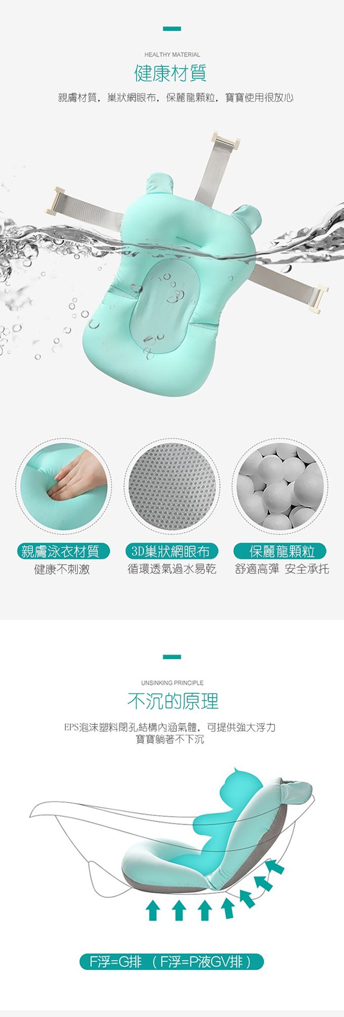 2. 多點支撐,寶寶也能安心泡水洗澡。