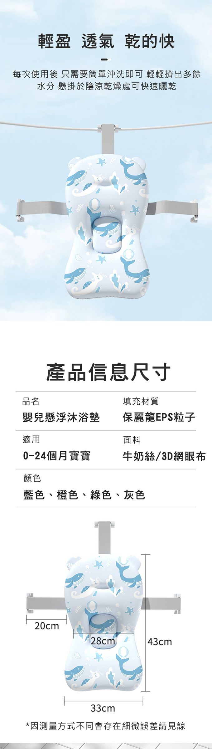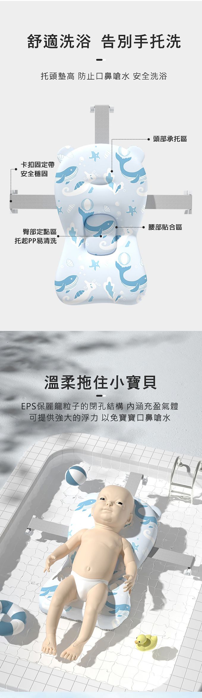 3.此商品為洗澡輔助,並非可當泳圈浮力使用,使用時須有大人陪伴及觀察,請勿將嬰兒放置便離開。