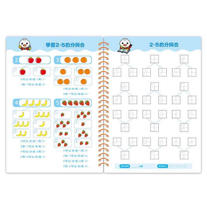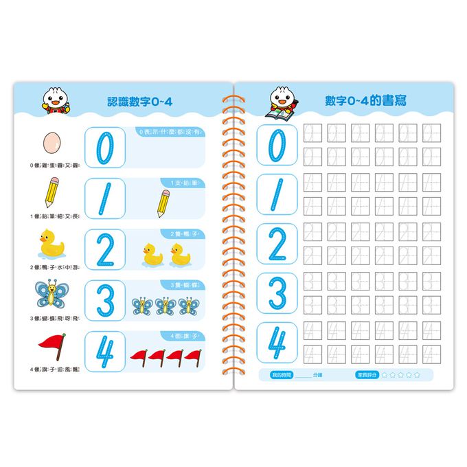 大字形附注音的數學內容,幫孩子打下基礎認知,同時配合凹槽畫圖、寫字,家長也可以依照孩子的程度幫忙評分,促進親子間互動關係,共享親子互動時光。書末還有連連看等小遊戲,讓孩子學會以後練習,強化認知記憶。