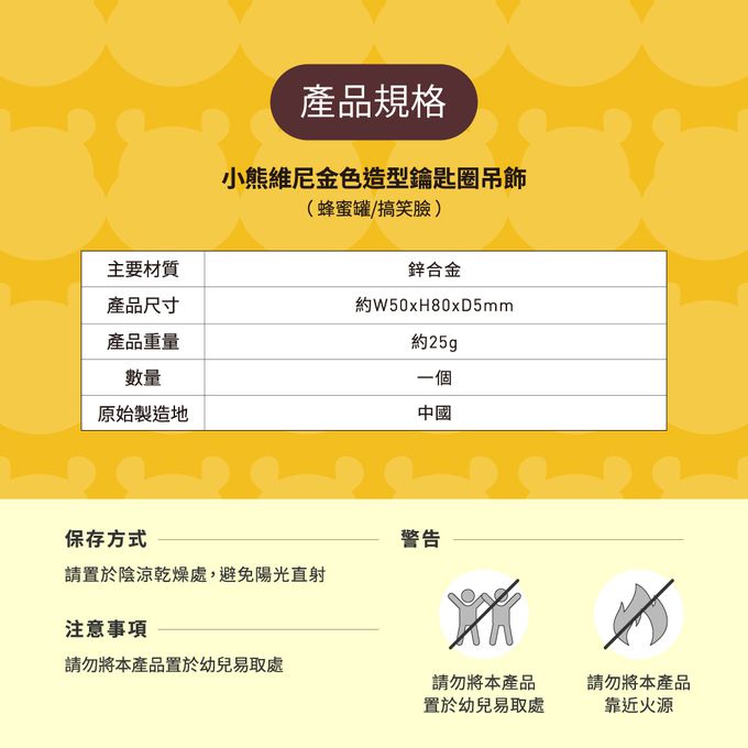 商品名稱:小熊維尼金色造型鑰匙圈吊飾