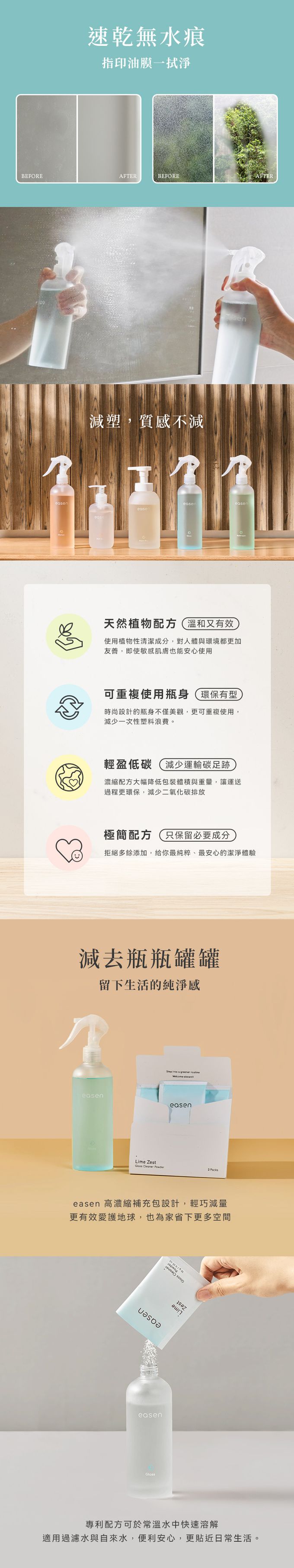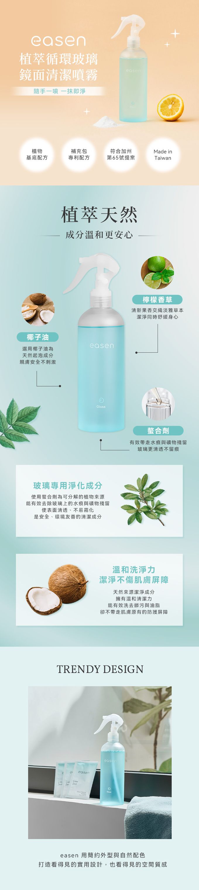 Easen 植萃循環玻璃鏡面清潔噴霧,以檸檬香草香氛喚醒清爽氣息;