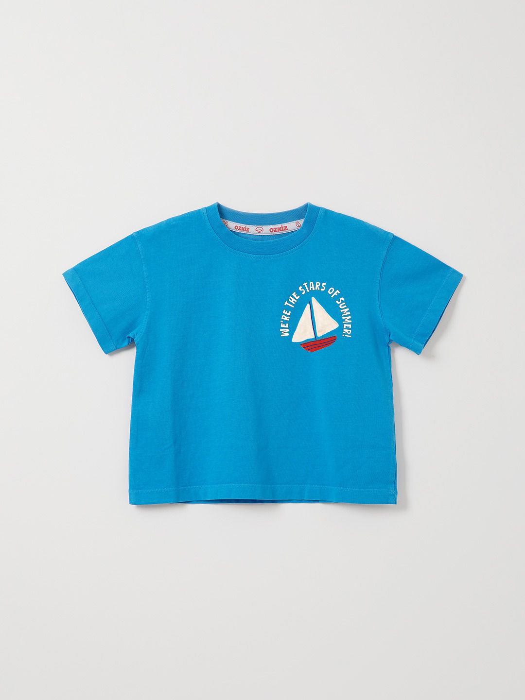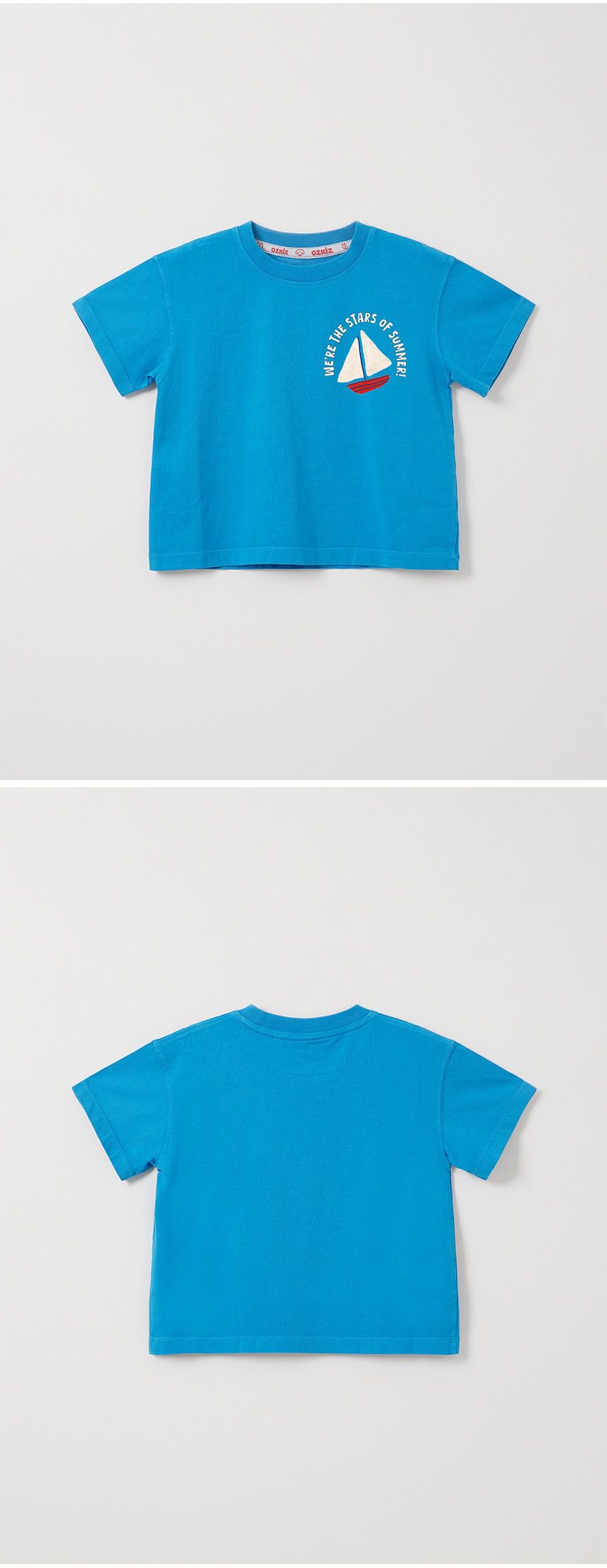 韓國 OZKIZ - 100%澳洲棉純粹呼吸短袖上衣-小帆船-水藍