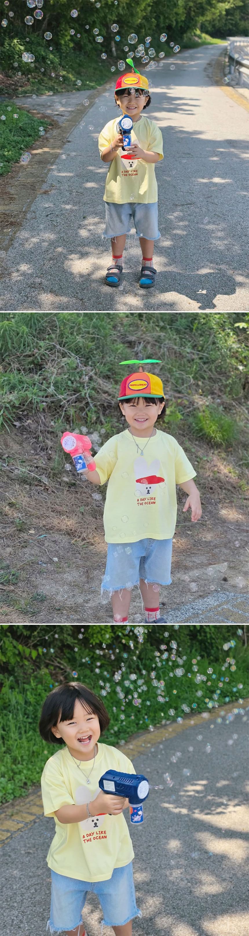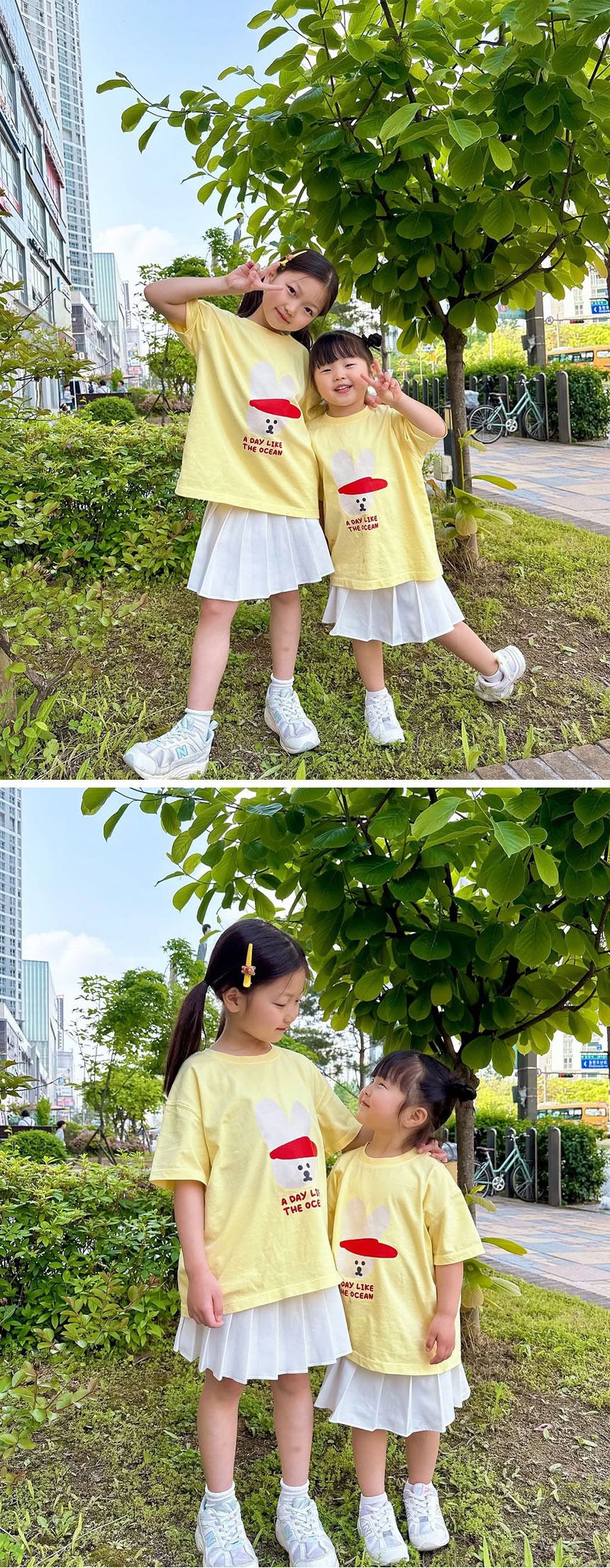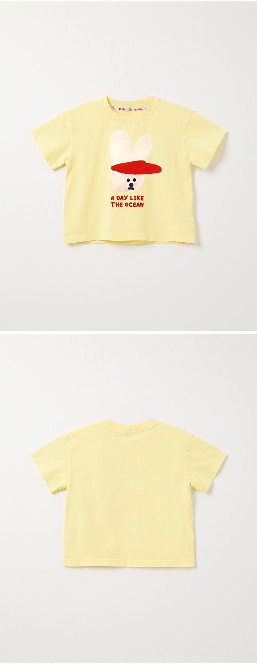 韓國 OZKIZ - 100%澳洲棉純粹呼吸短袖上衣-戴帽兔子-淺黃