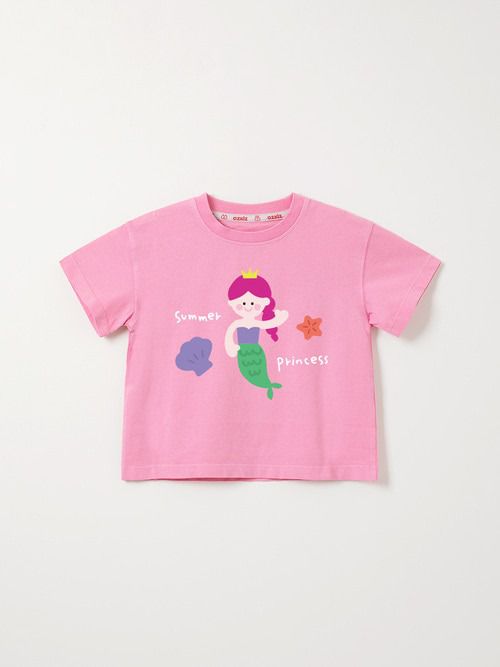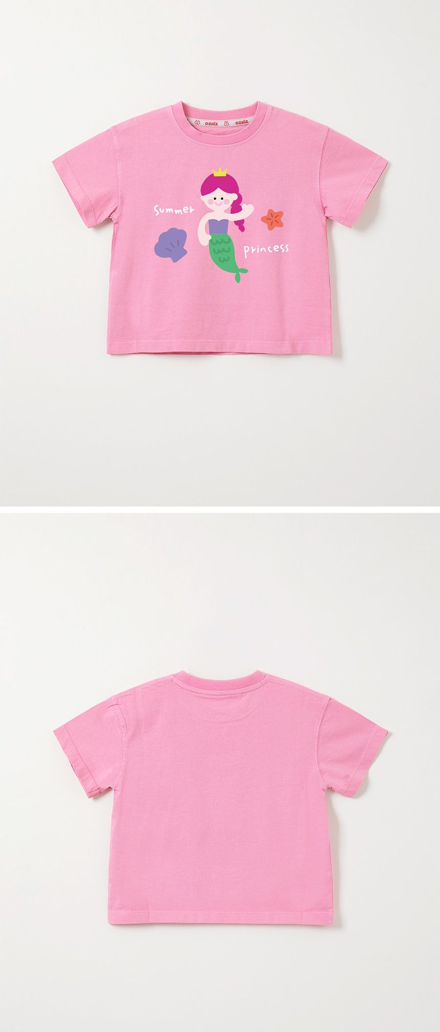 韓國 OZKIZ - 100%澳洲棉純粹呼吸短袖上衣-公主美人魚-粉紅