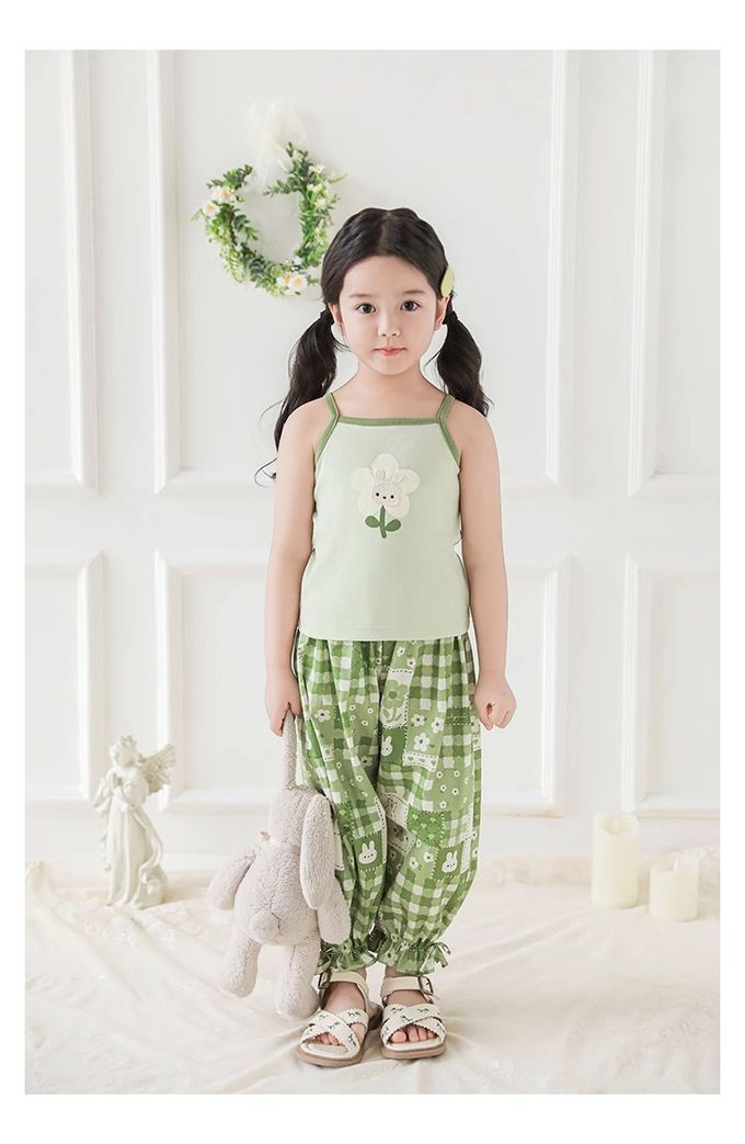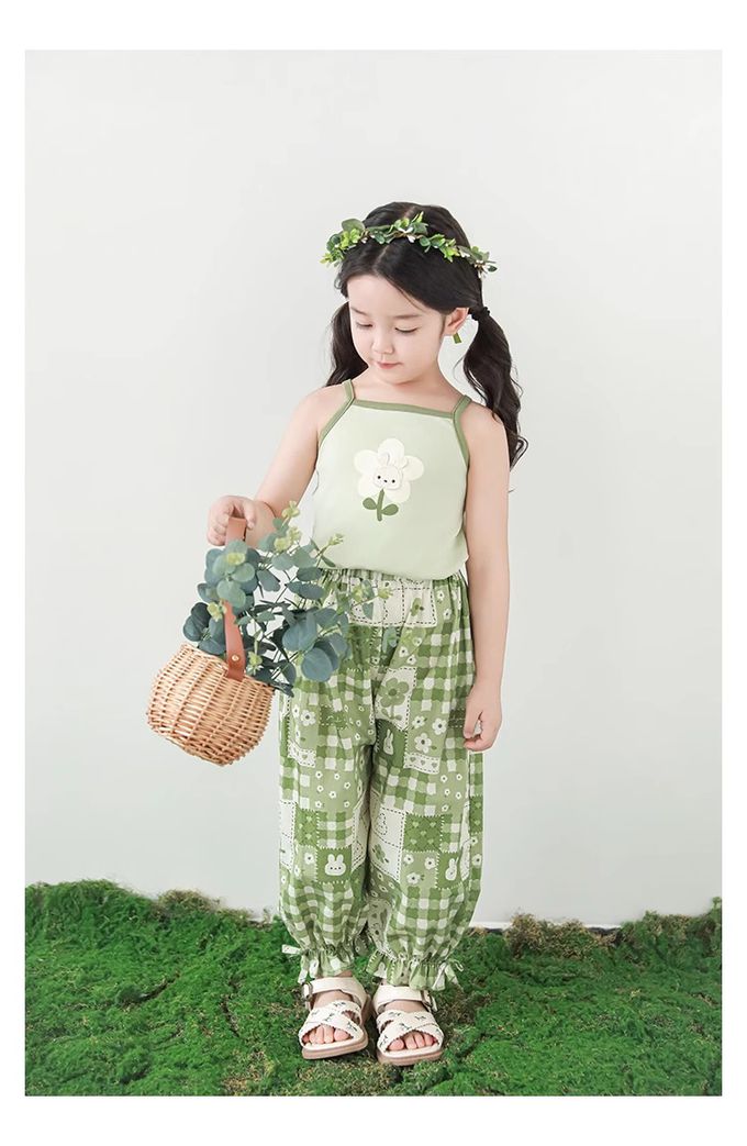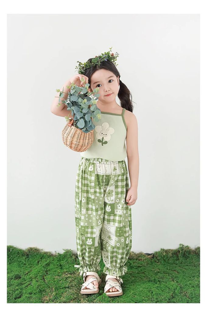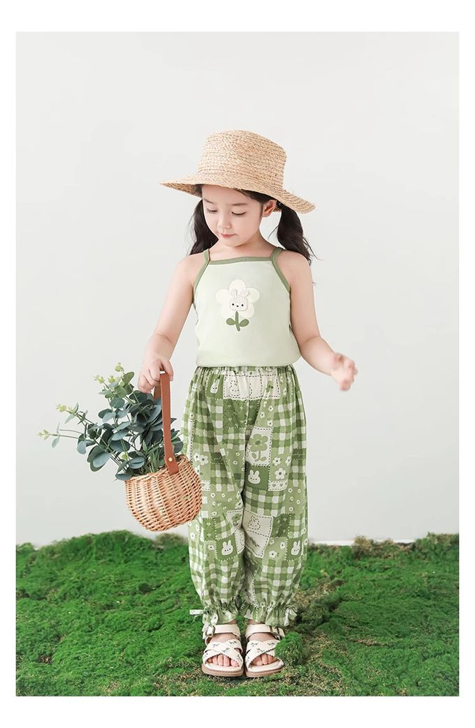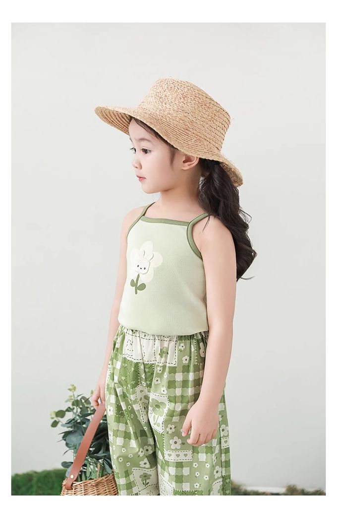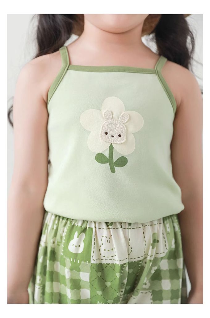 雲感彈力細肩帶背心-小花兔兔-綠色
