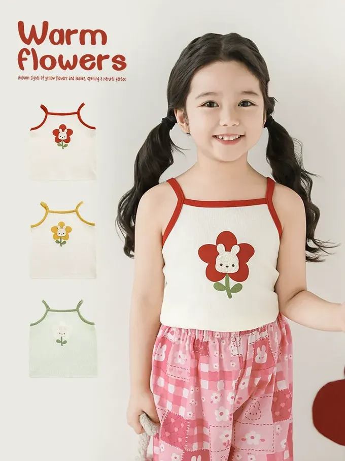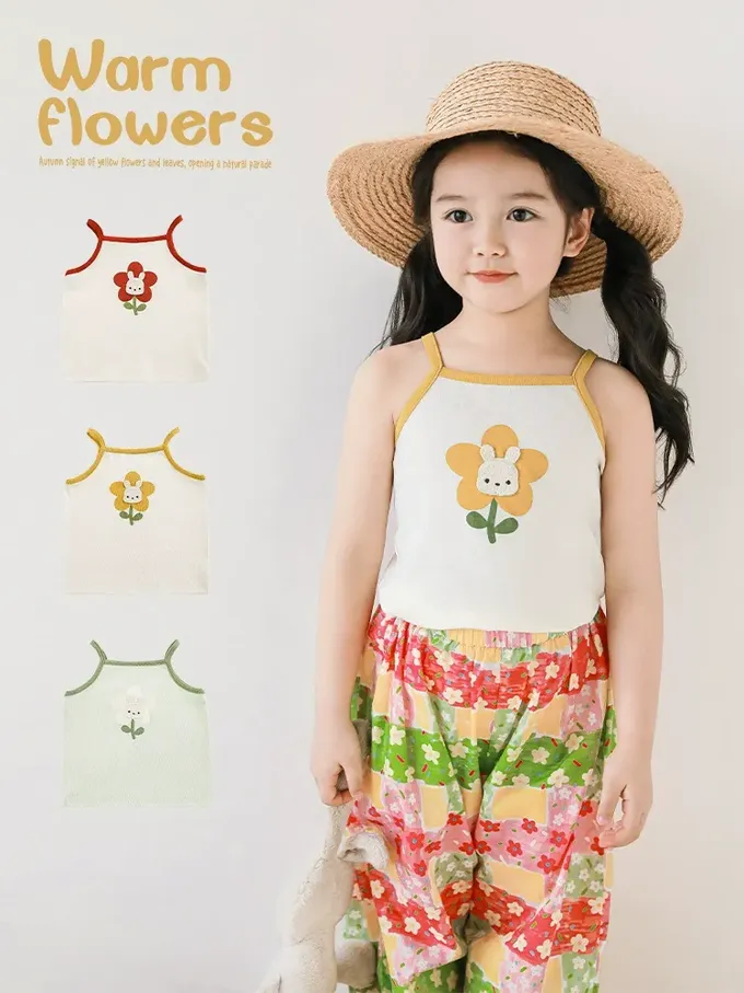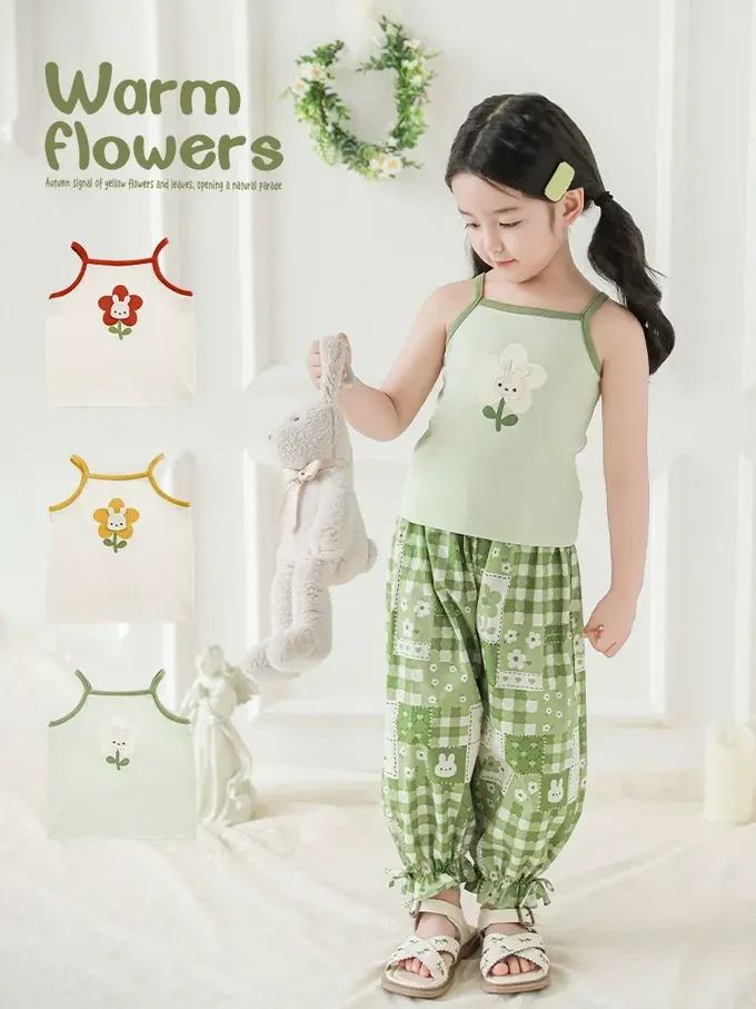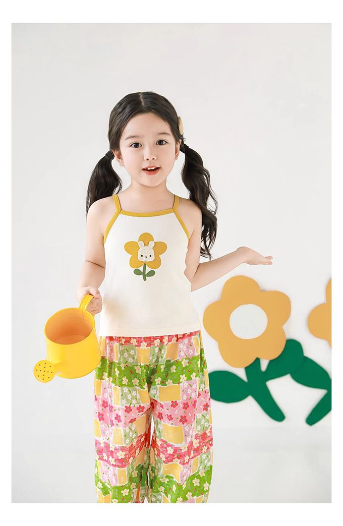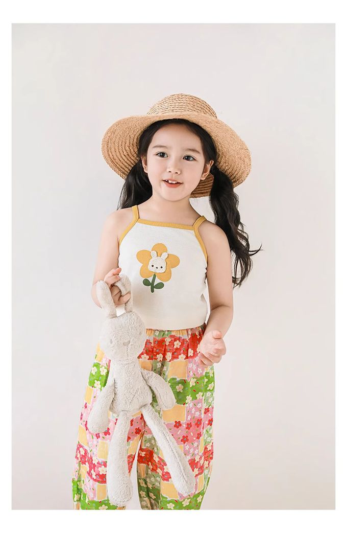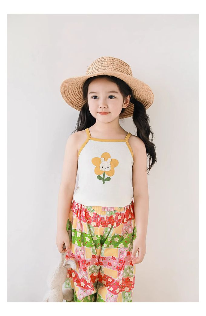 雲感彈力細肩帶背心-小花兔兔-黃色