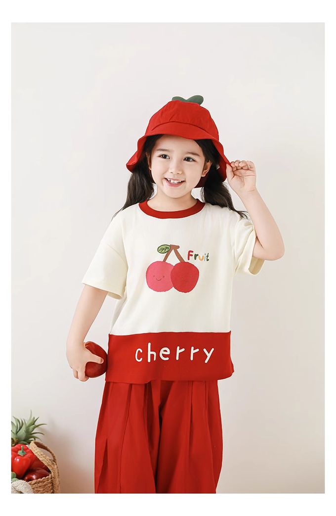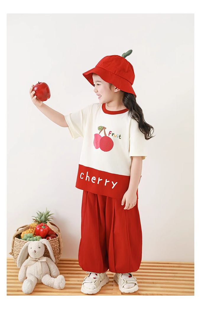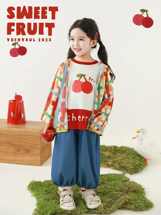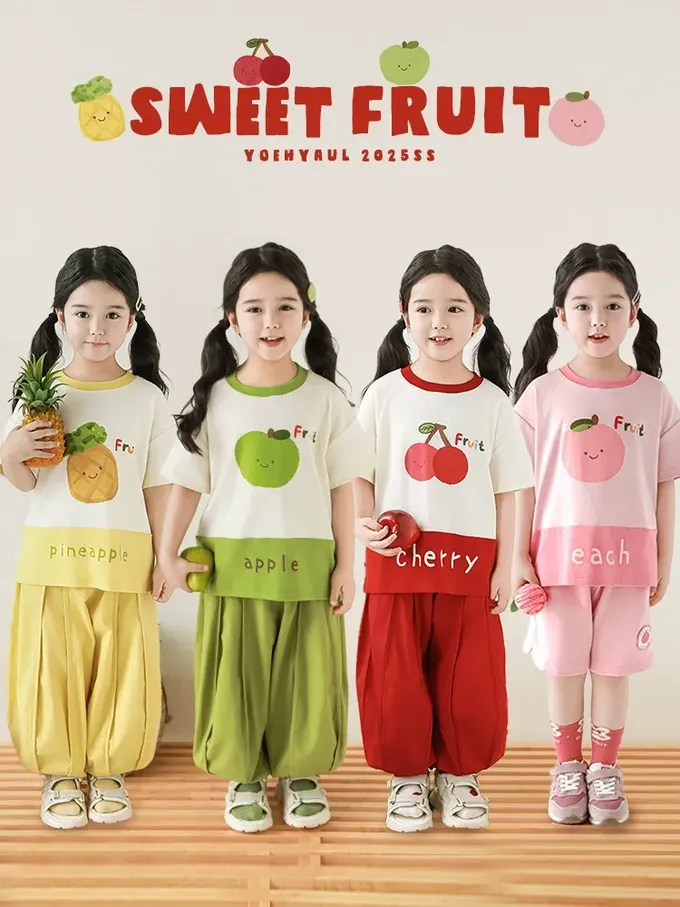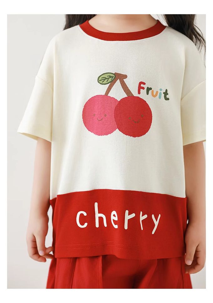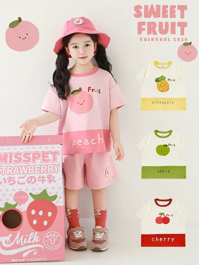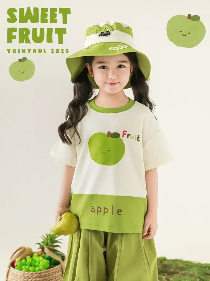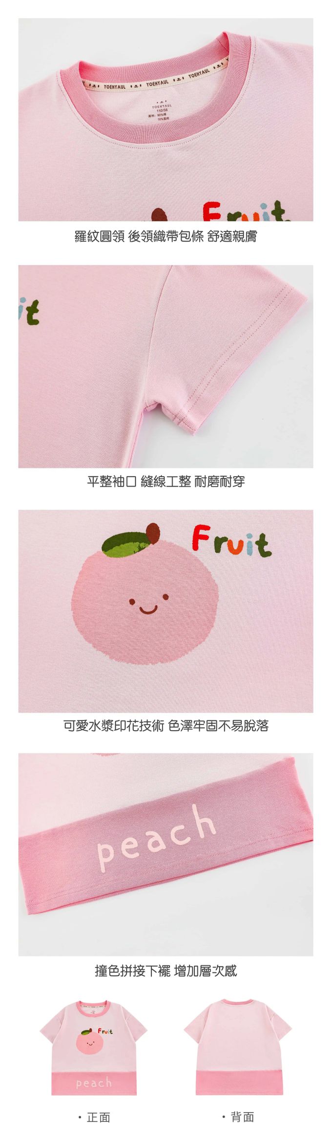 水果印花+拼接下襬,色澤牢固、活潑吸睛