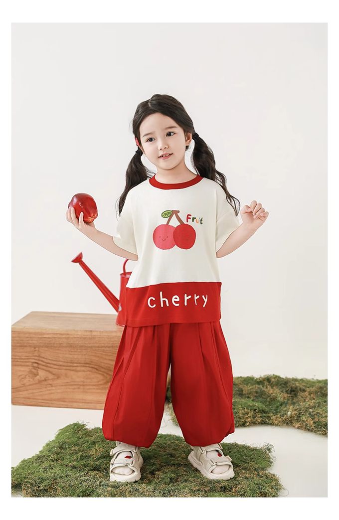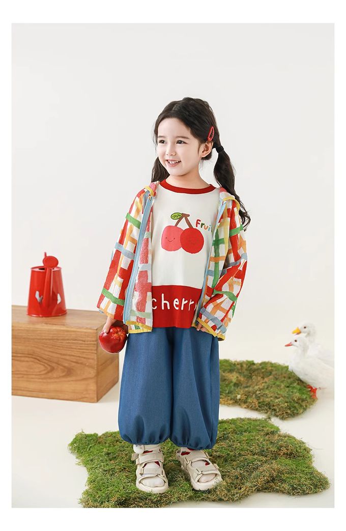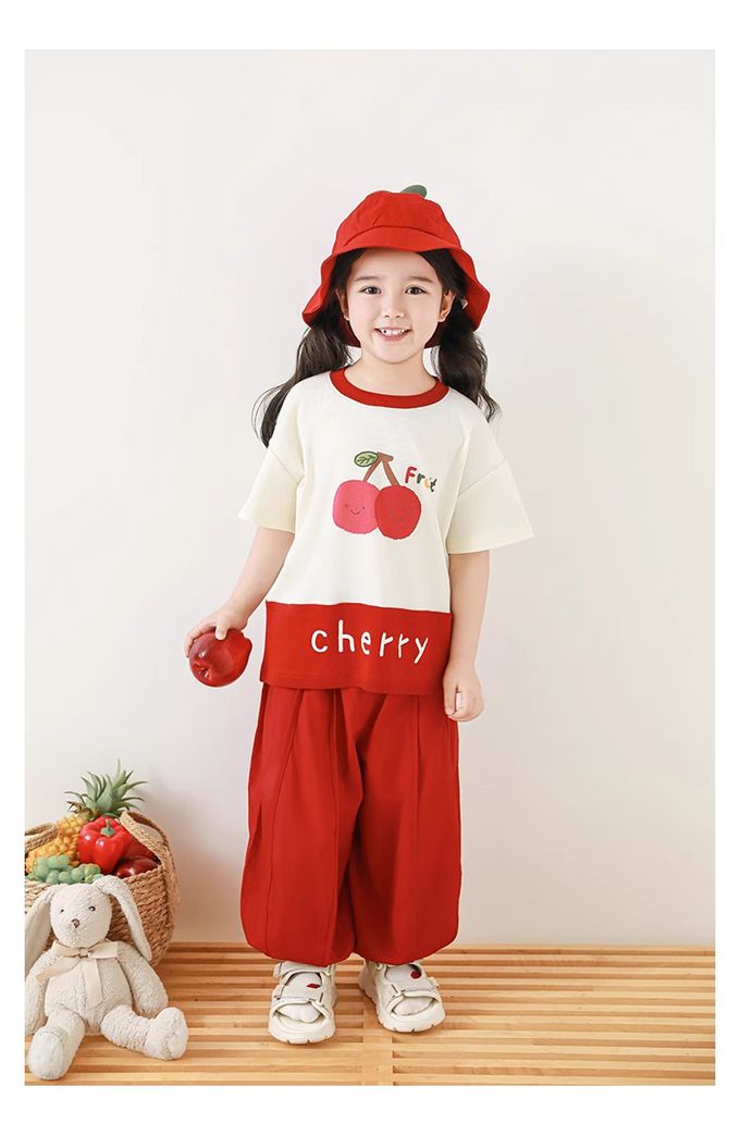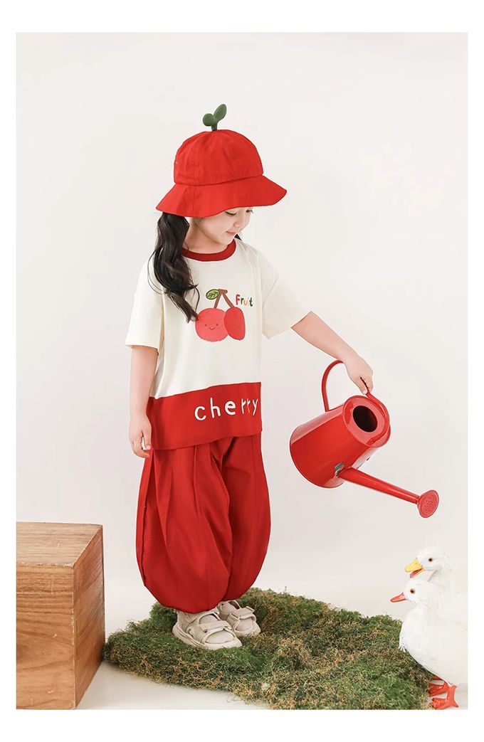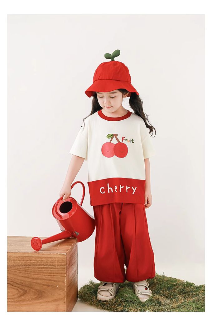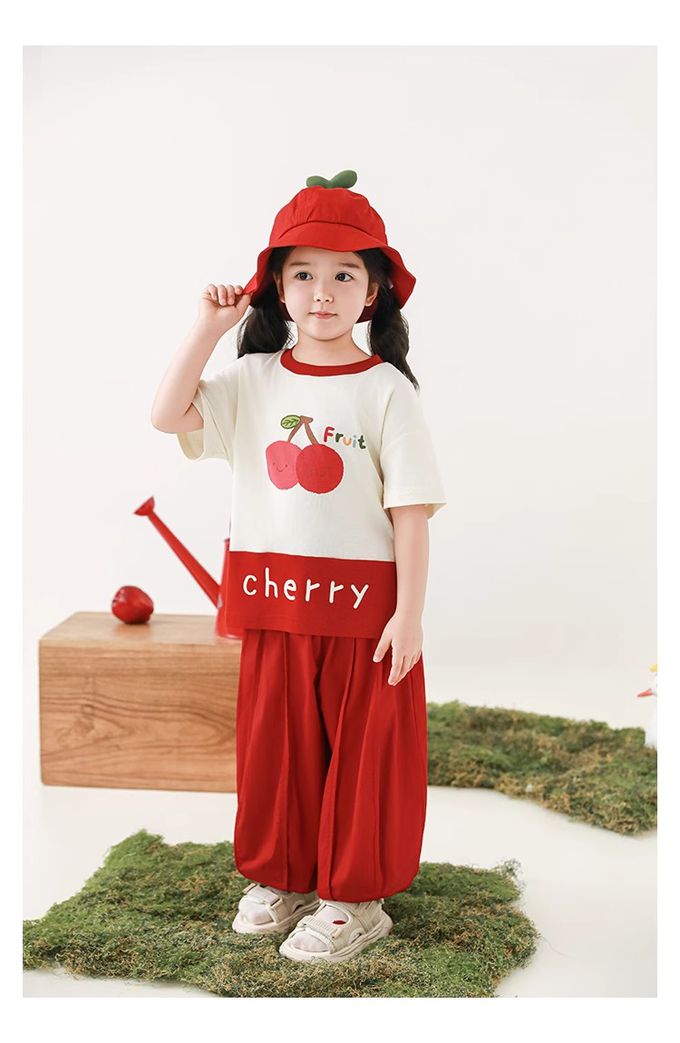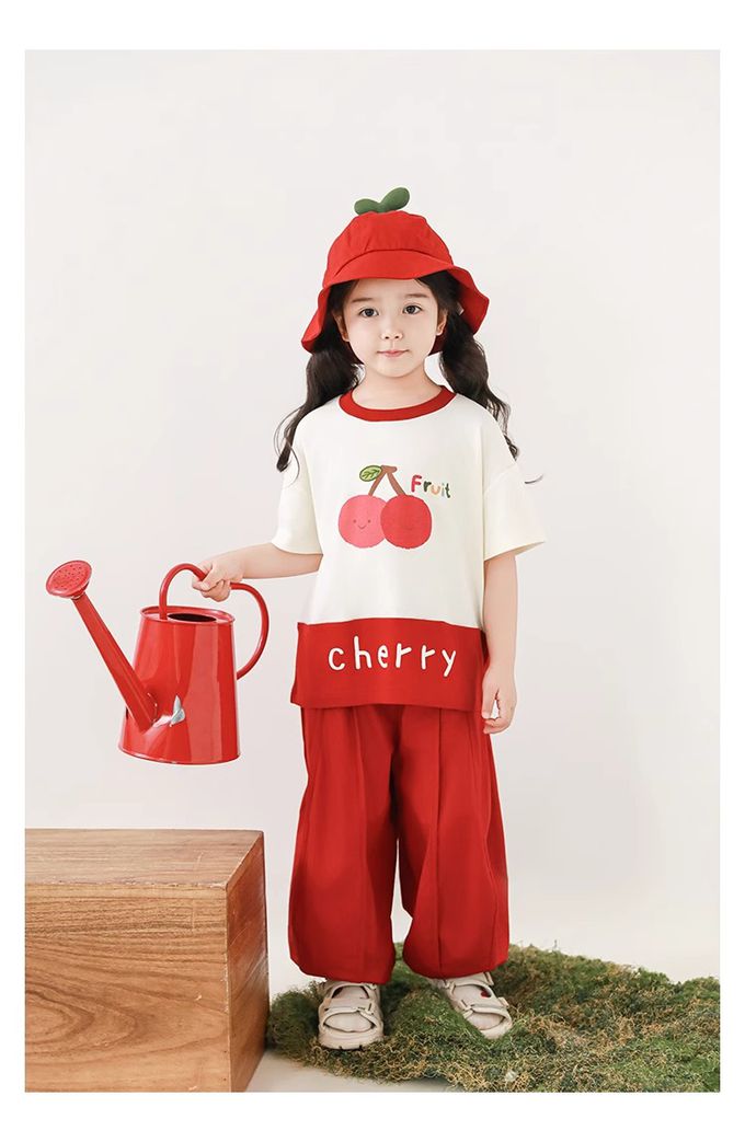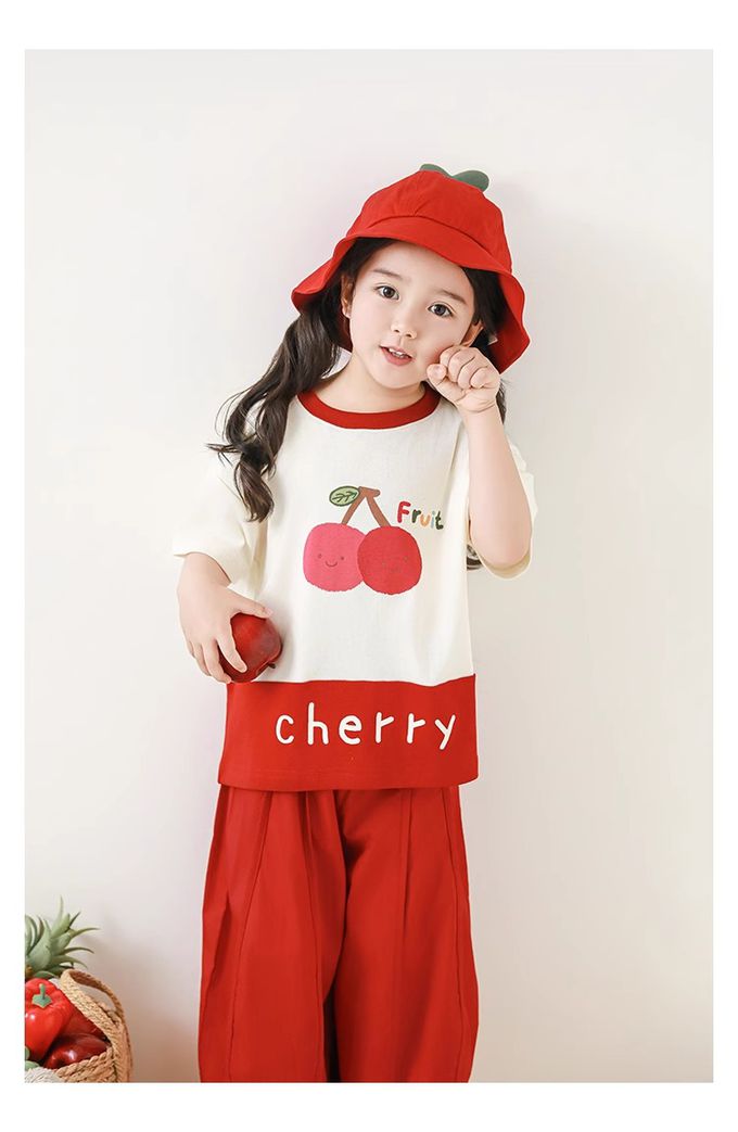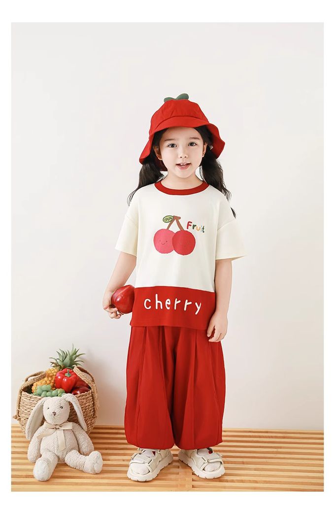 水果印花+拼接下襬,色澤牢固、活潑吸睛
