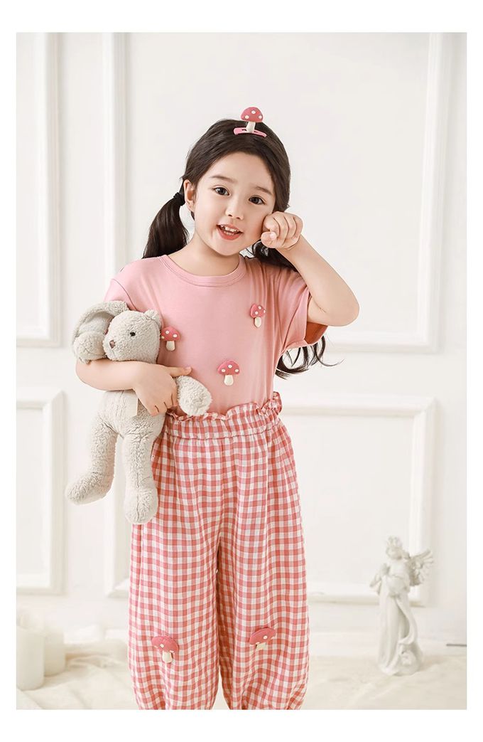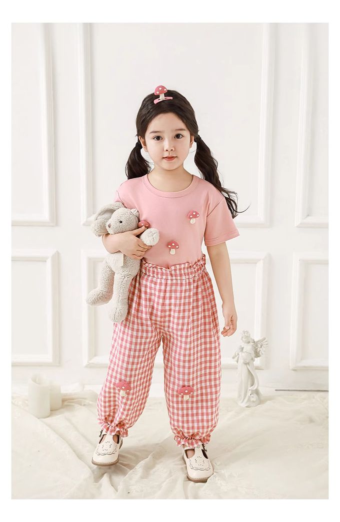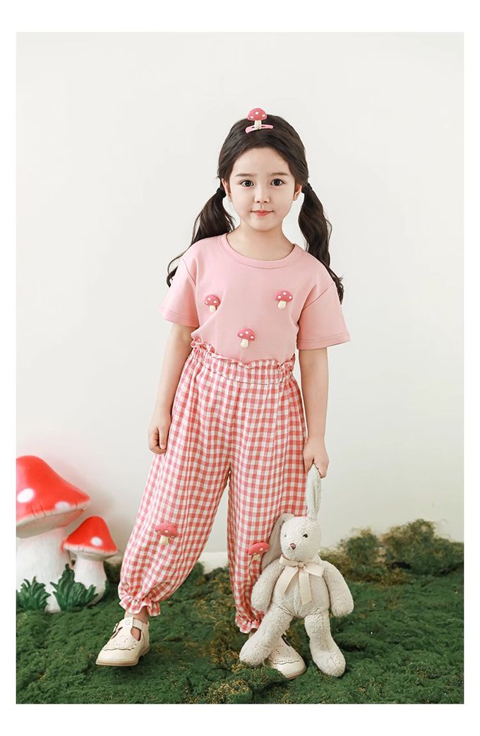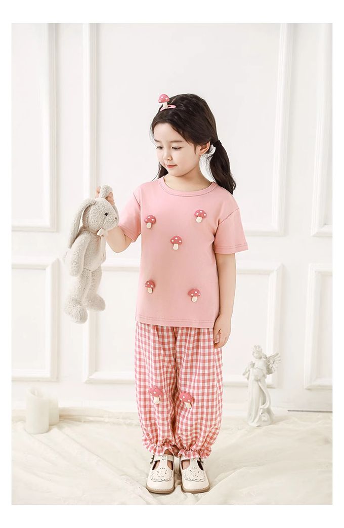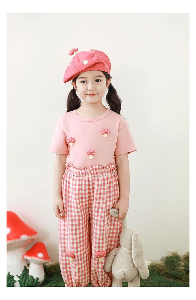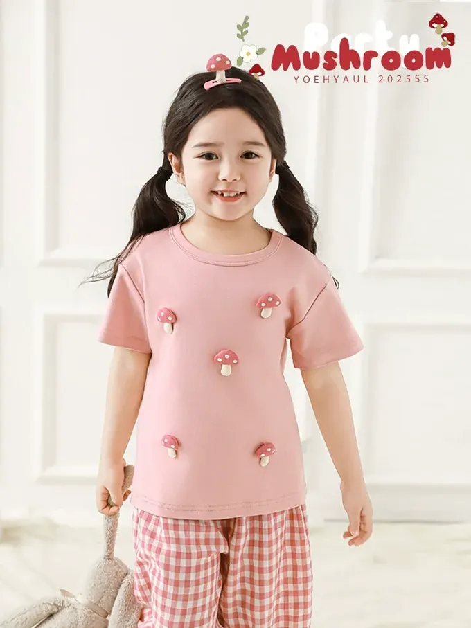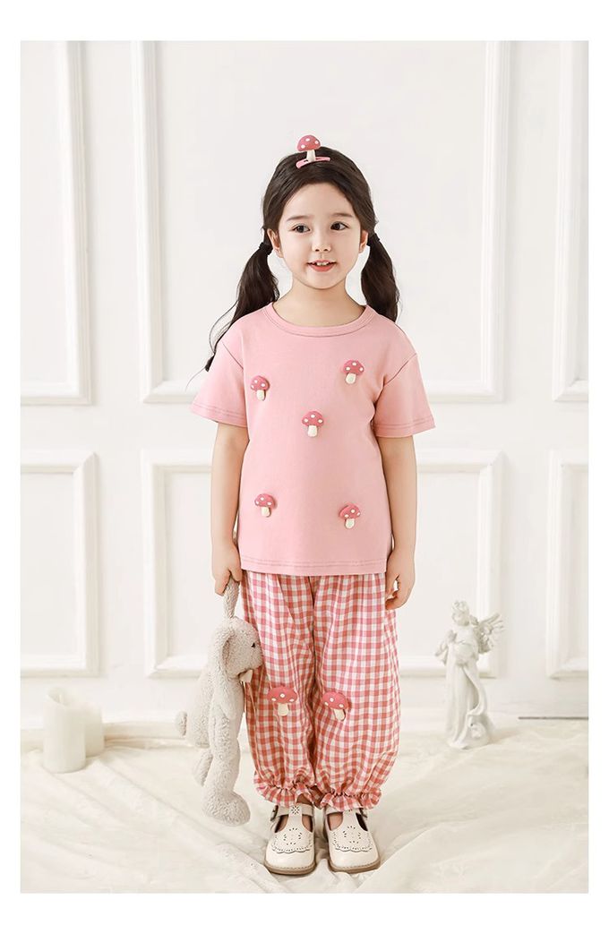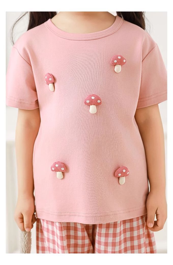 純棉透氣短袖上衣-立體蘑菇-粉色
