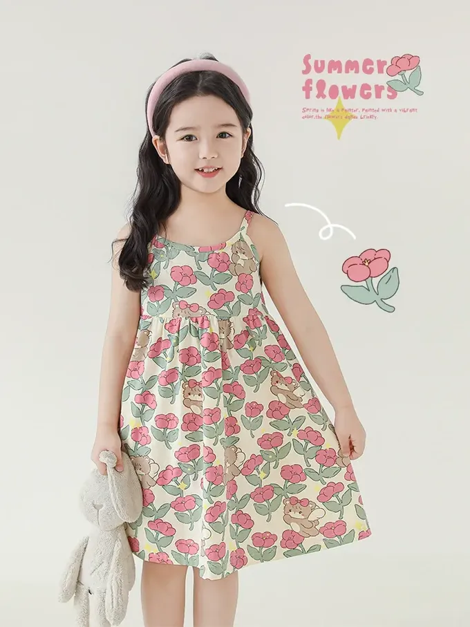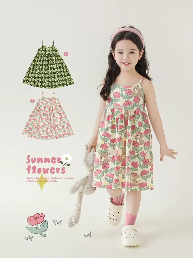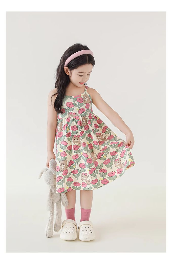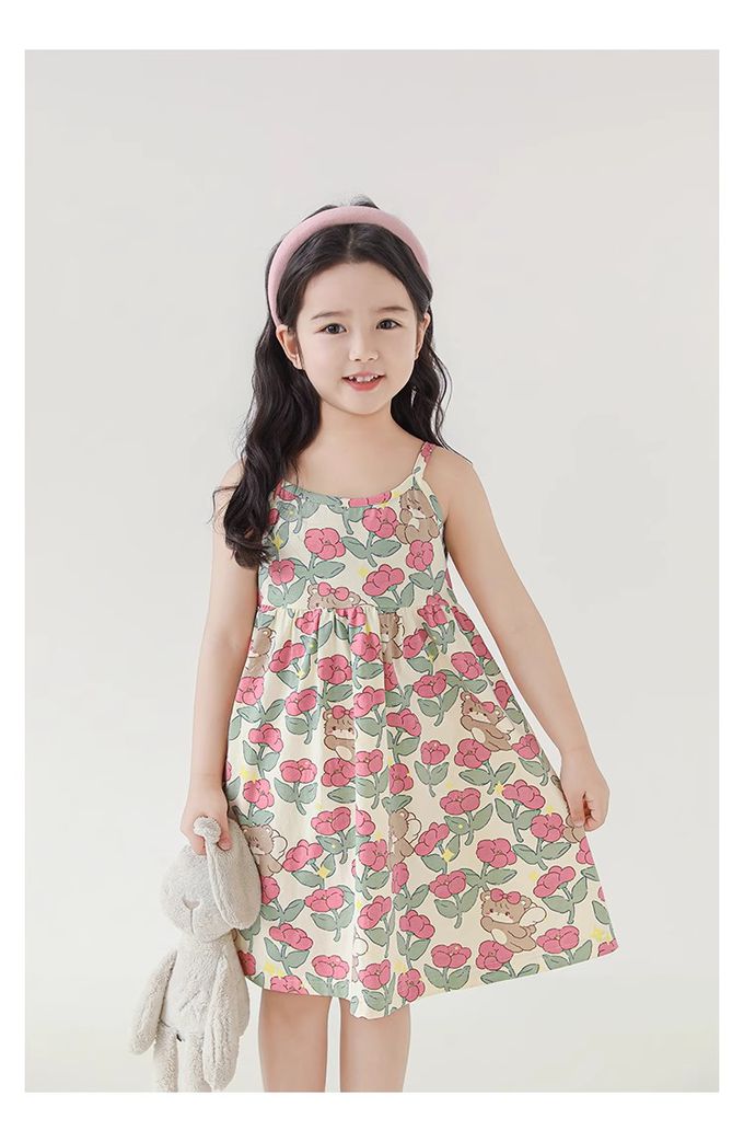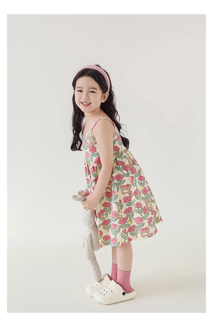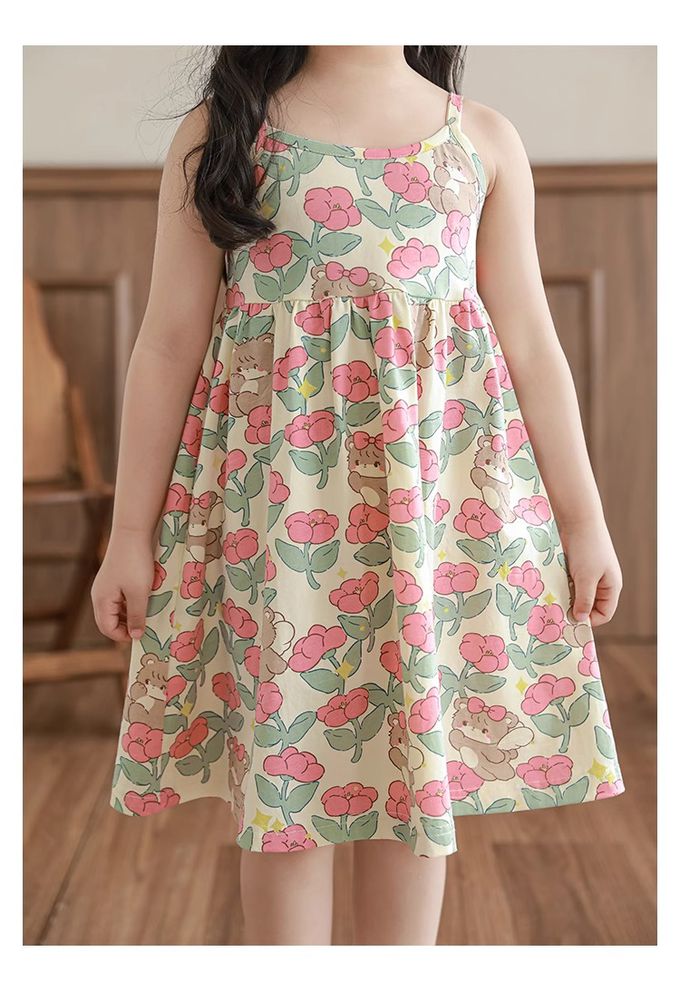 森林系細肩帶洋裝-粉色小花-米杏