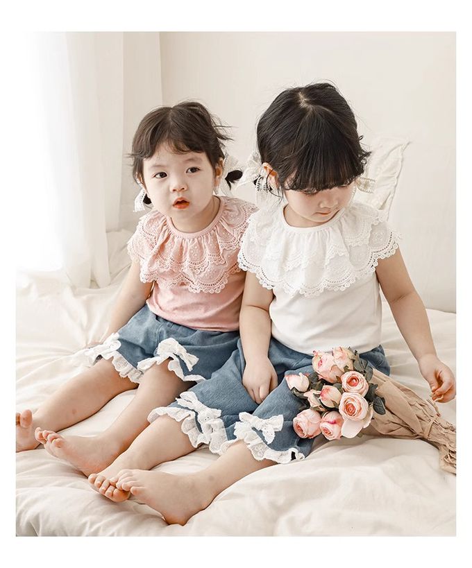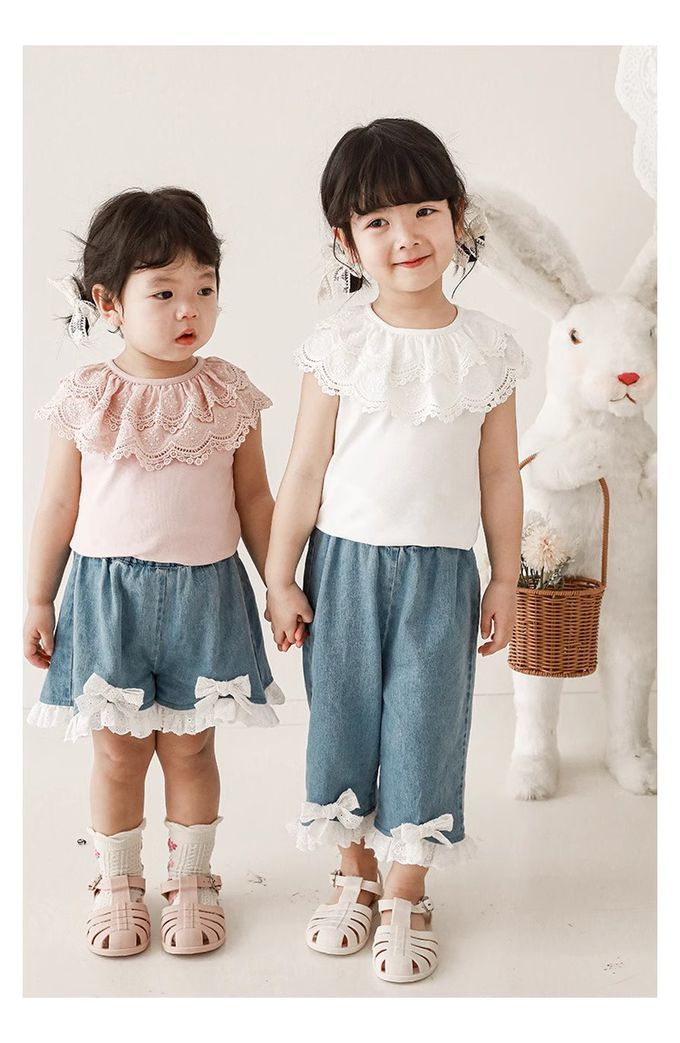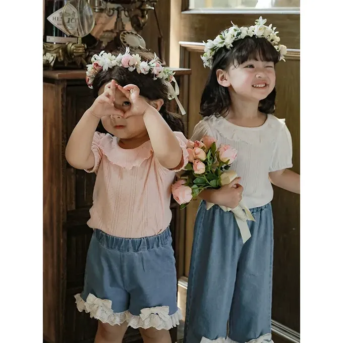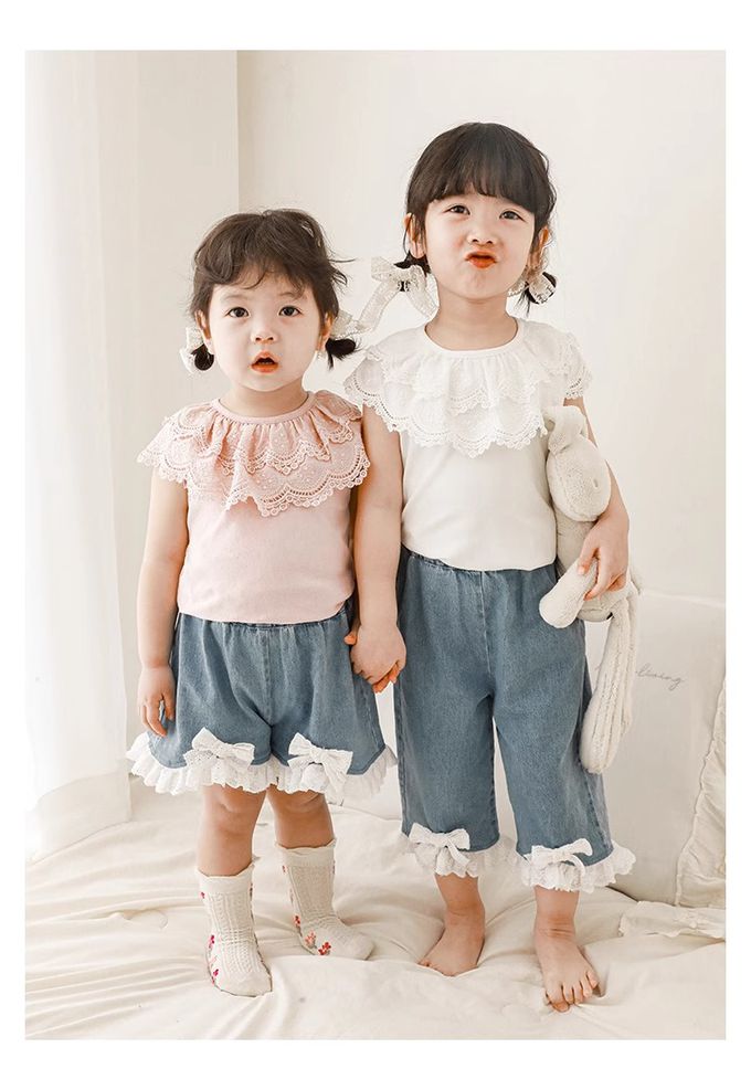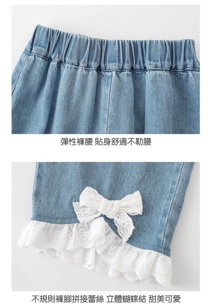 褲腳蕾絲拼接+蝴蝶結裝飾,甜美可愛
