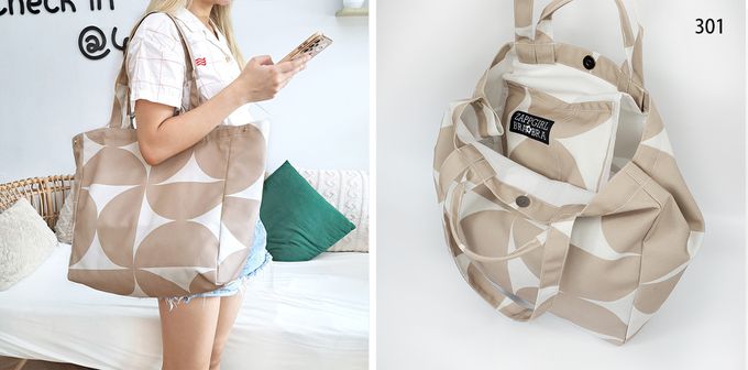 成分:泰國潮流設計師包款~ 在地的手工包,設計的圖案印花和縫紉設計是品牌堅持的獨特。 這咖容量很大,可以裝很多東西,多款花布設計,超喜歡他們家的設計好美,每一款都想收集! 可以肩背,手提,內容量超大可以裝超多東西,內袋還有兩隔層,東西收納很方便! 側邊有隱藏式扣子設計,包包可隨意變換大小,這款包特別的設計就是可以從廣口型變成方型包! 隨著心情與穿搭變成不同風格造型~~ 面料不會粗糙,皮膚也完全不會扎扎的,CP值真的很高! 連筆記型電腦,ipad,A4文件都可以放得下唷~ 學生、上班族、旅行、海邊沙灘、購物袋、當媽媽包都很適合喔!! **包包不含拍照的配件與吊飾喔!! ① 使用中性洗衣精清洗,可手洗或機洗 ② 耐高溫,但不易起皺所以也不太需要熨燙 尺寸: 包包寬50x高35x厚18cm 手提背帶高度:11cm 肩背背帶高度: 25cm (包包不含玩偶吊飾)