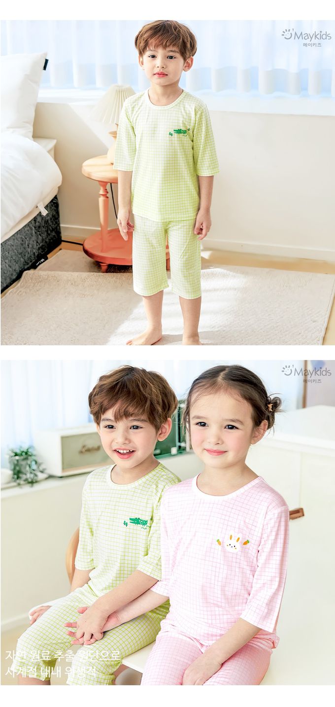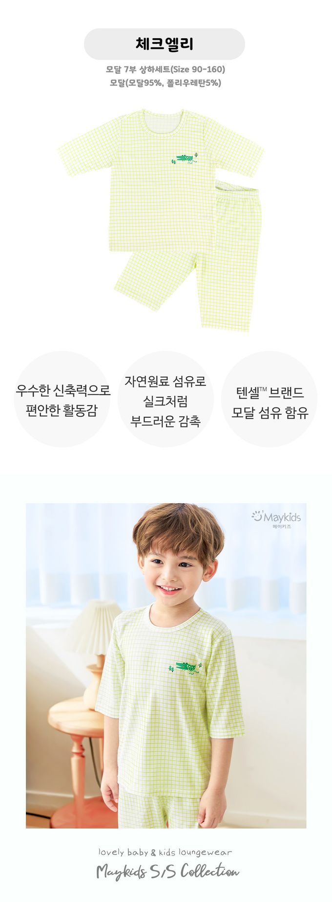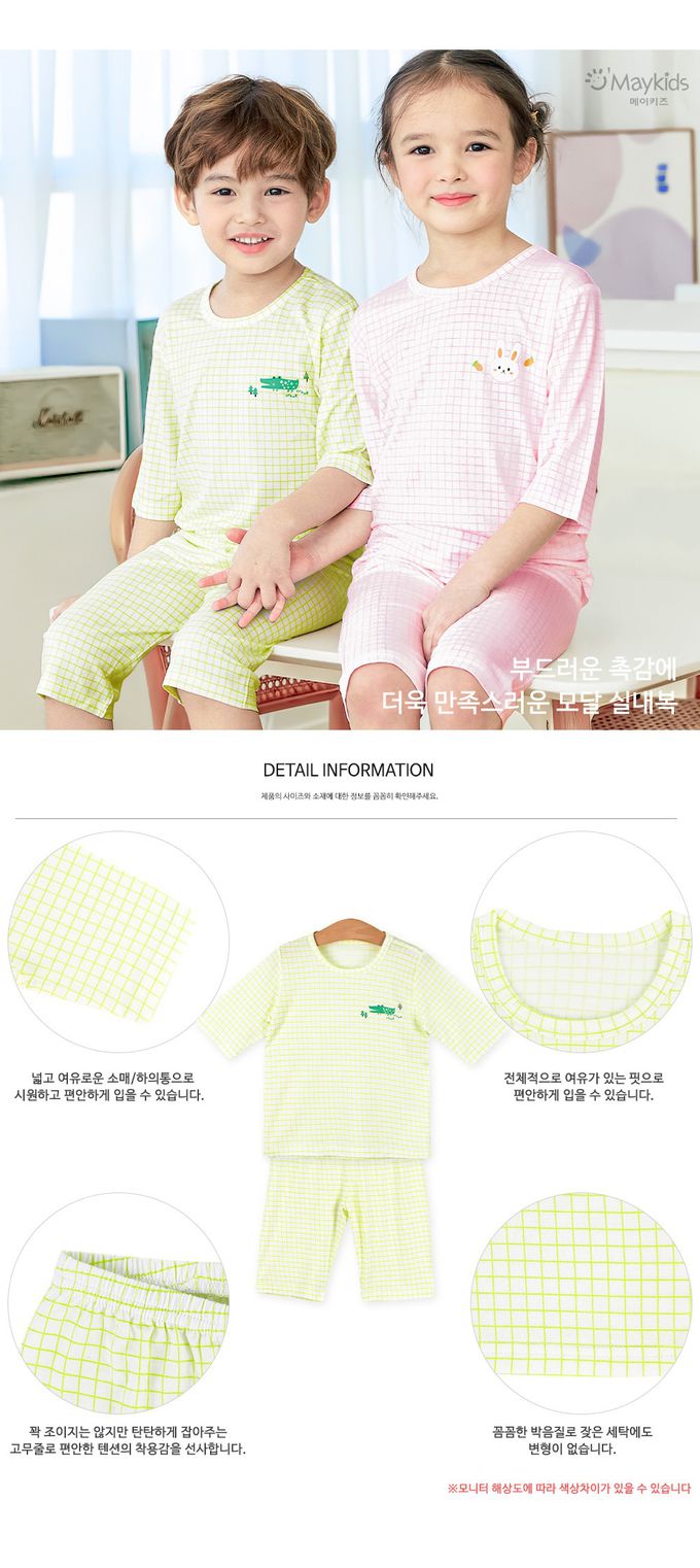 韓國 Maykids - 天絲莫代爾透氣七分袖家居服-黃綠格鱷魚