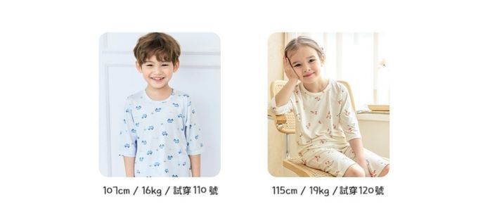 1. 尺寸表單位皆為公分(cm),實際尺寸會因布料彈性、水洗、測量起迄點等因素略有誤差。建議參考孩子平時穿著衣物尺寸進行選購。