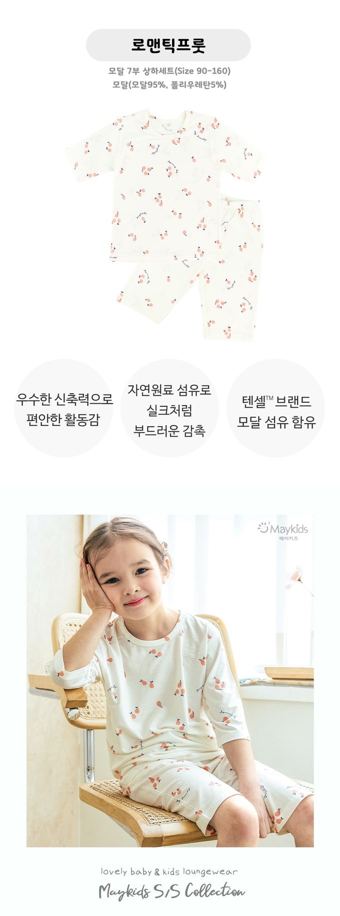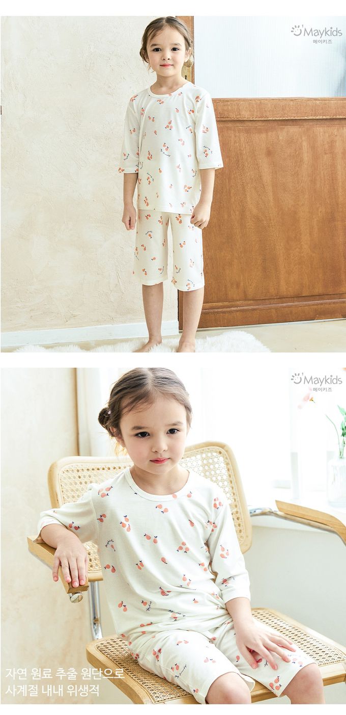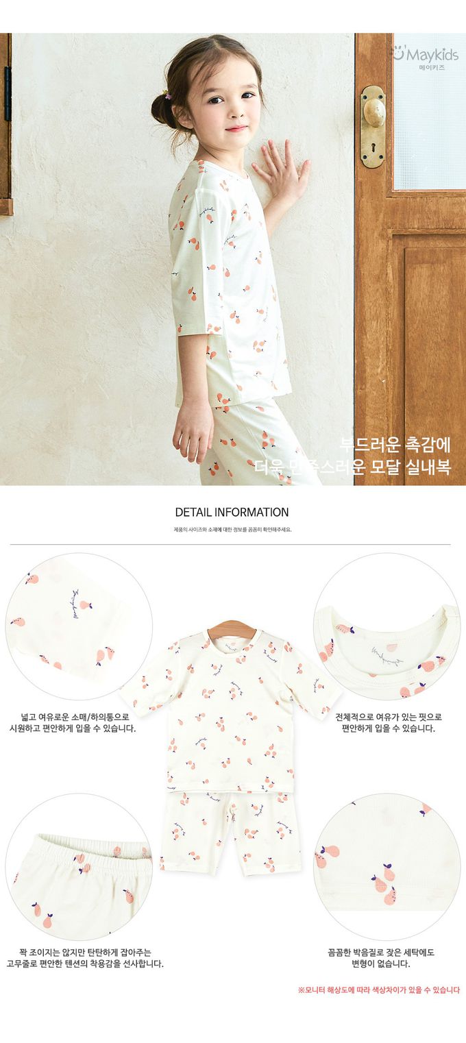 韓國 Maykids - 天絲莫代爾透氣七分袖家居服-西洋梨-米白