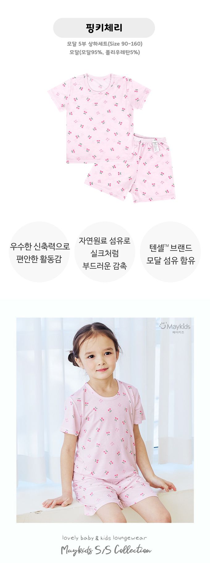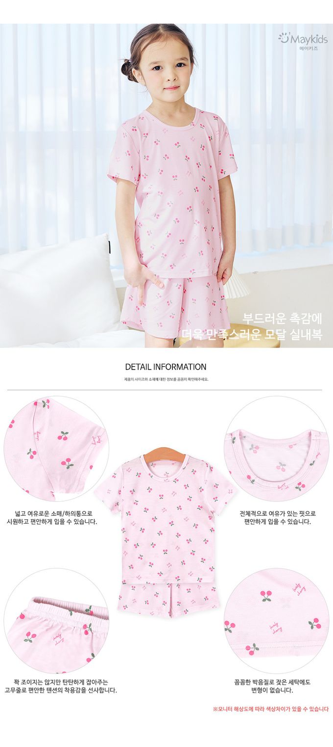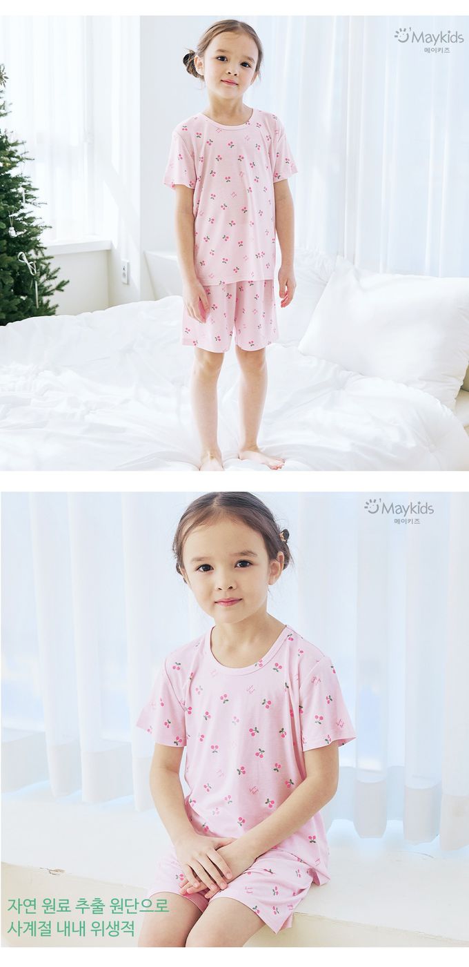 韓國 Maykids - 天絲莫代爾透氣短袖家居服-小櫻桃-粉