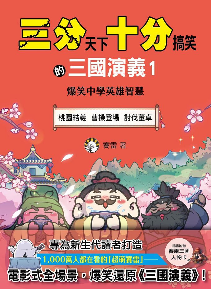 賽雷這套《三分天下‧十分搞笑的三國演義》,用「電影式分鏡全場景」的繪製方式,搭配每一隻都有特色超有喜感的「帥萌Q版三國英雄人物團」,重新演繹三國演義的精彩內容,讓劉備、張飛、關羽、曹操、周瑜、諸葛亮、桃園三結義、三英戰呂布……這些耳熟能詳的歷史人物和經典故事,不再只是一個個書本上的名詞,而是栩栩如生地跳出來在你眼前,告訴你──「蒼天在上!后土為證!這天下,將由我們涿郡boys來守護!」(?)