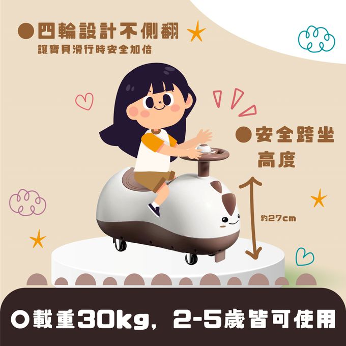 ▲ 防後防傾倒片+四輪設計不側翻,讓寶貝滑行時安全更加倍。
