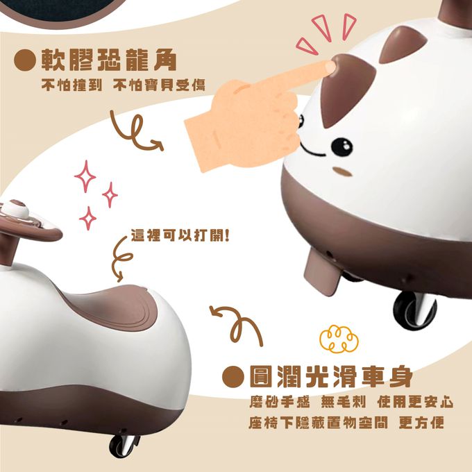 2.本商品學步滑行使用並無煞車設計,勿在陡峭坡道、樓梯、水邊或車道路上滑行。
