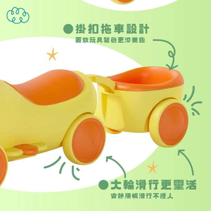 ▲ 拖車設計,置放玩具裝砂更添樂趣。