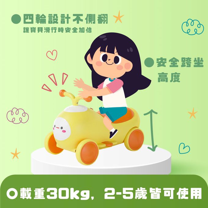 ▲ 四輪設計不側翻,讓寶貝滑行時安全加倍。