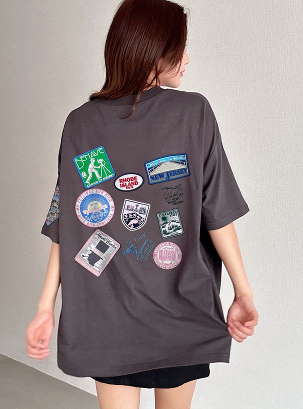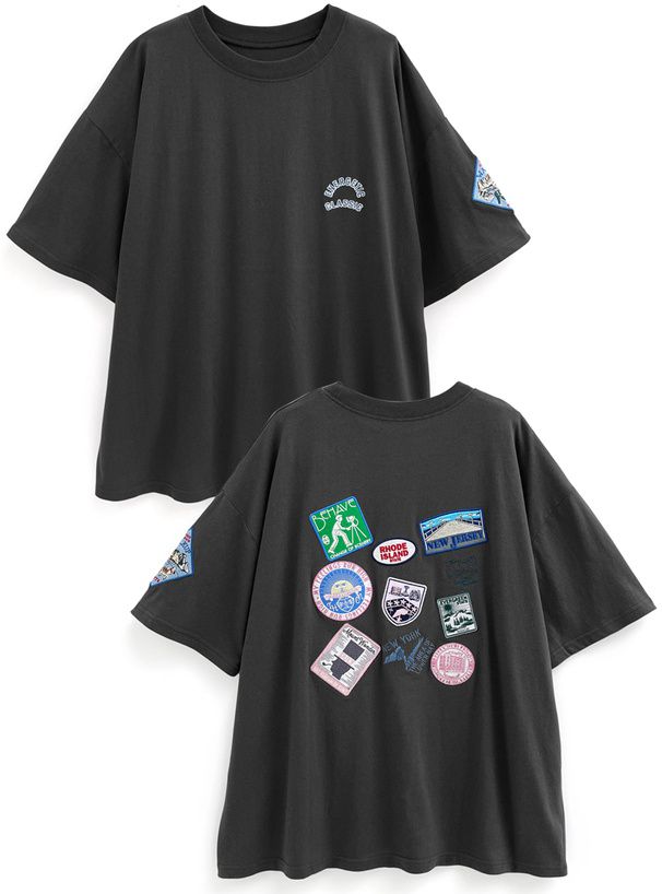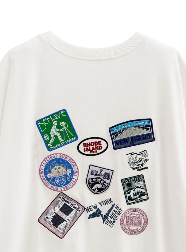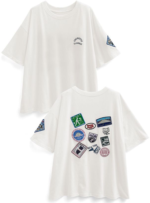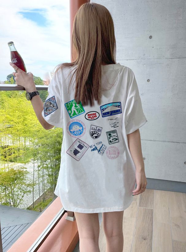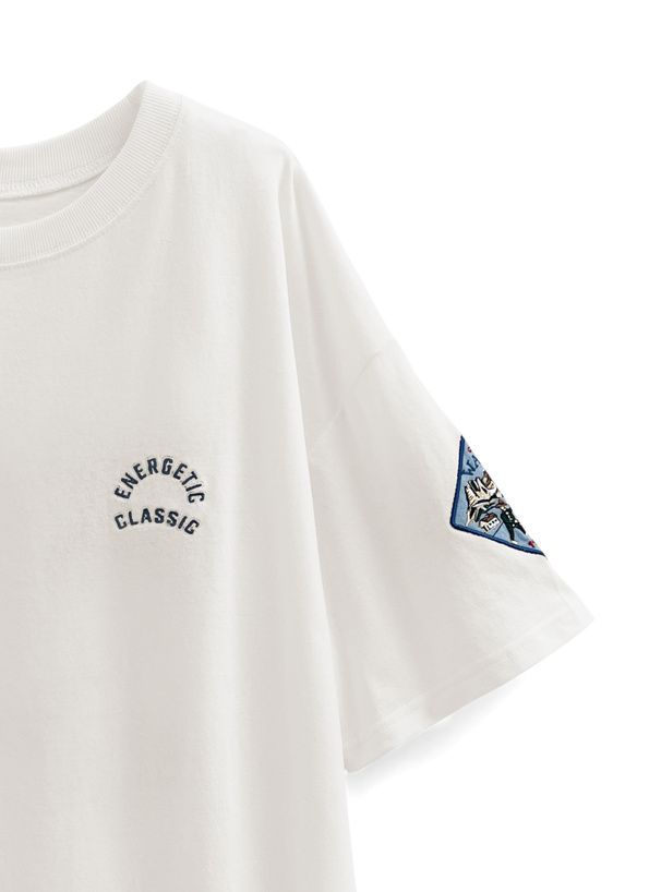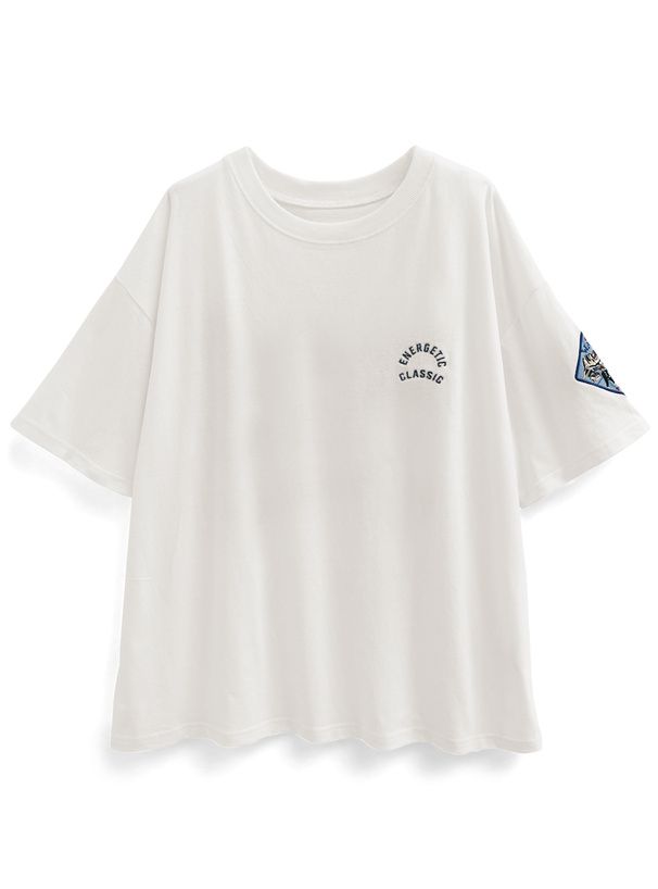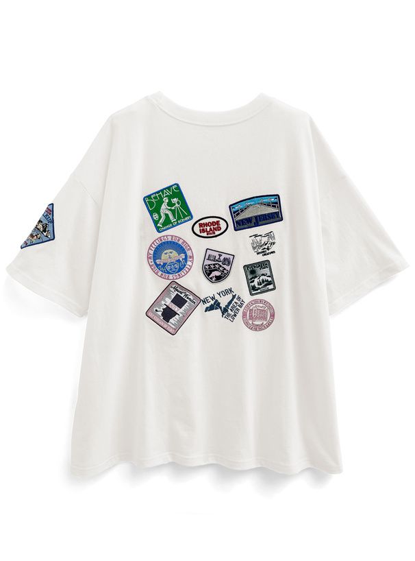 日本 GRL - 純棉 率性徽章刺繡長版T恤-白 (F)