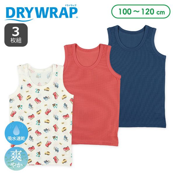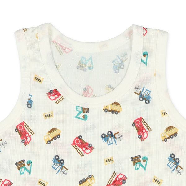 日本西松屋 - 吸水速乾 網眼涼爽背心內衣(3件組)-工程車x素面-白x紅x藍