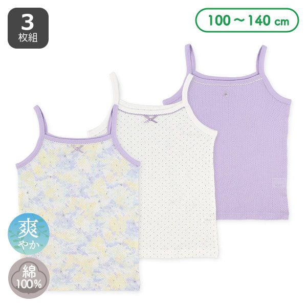 日本西松屋 - 純棉 網眼涼爽背心內衣(3件組)-暈染x點點-紫x白