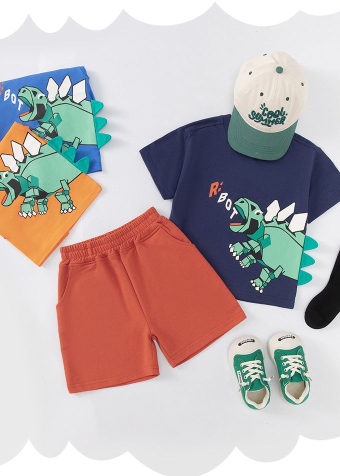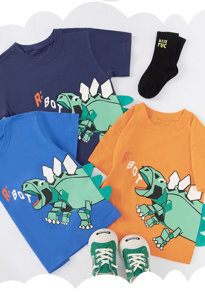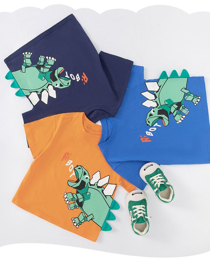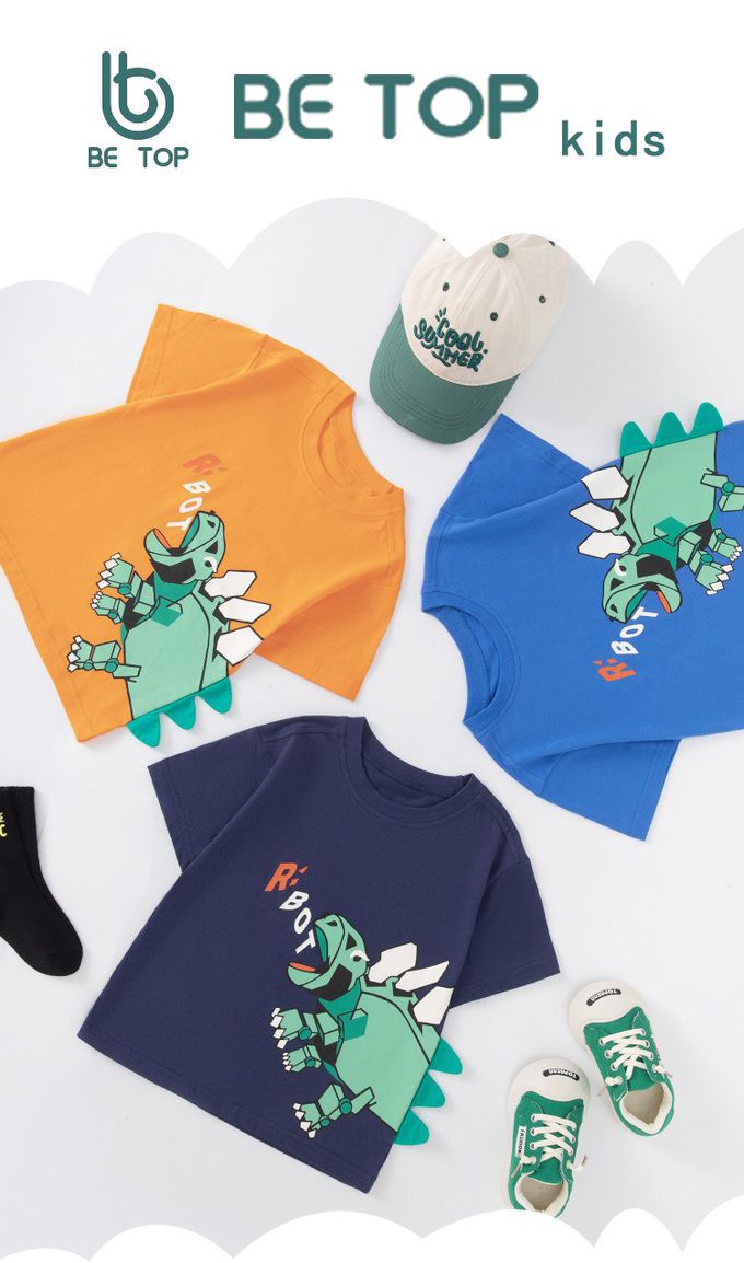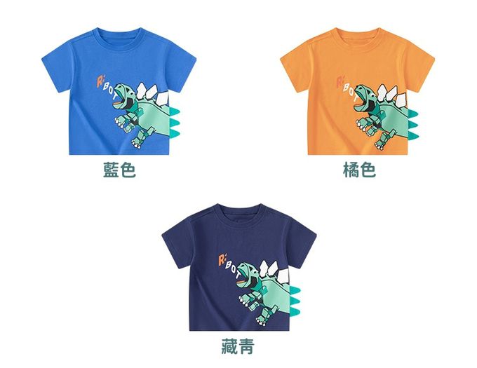 BE TOP - 純棉立體短袖上衣-恐龍踢足球-深藍色
