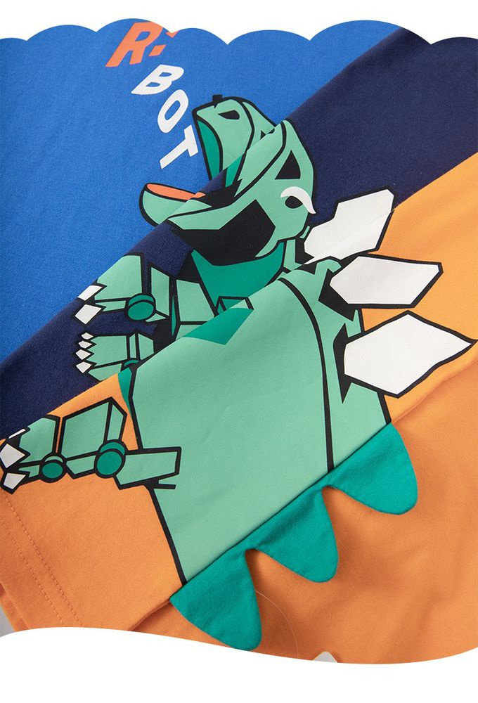 BE TOP - 純棉立體短袖上衣-恐龍相見歡-拼色黃