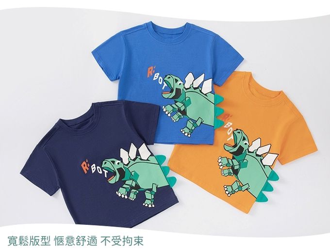 BE TOP - 純棉立體短袖上衣-恐龍印花-米白