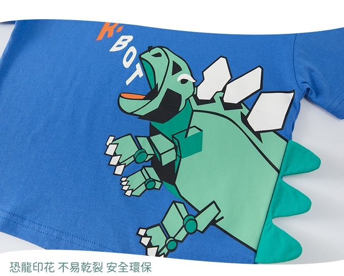 BE TOP - 純棉立體短袖上衣-大眼恐龍-藍色
