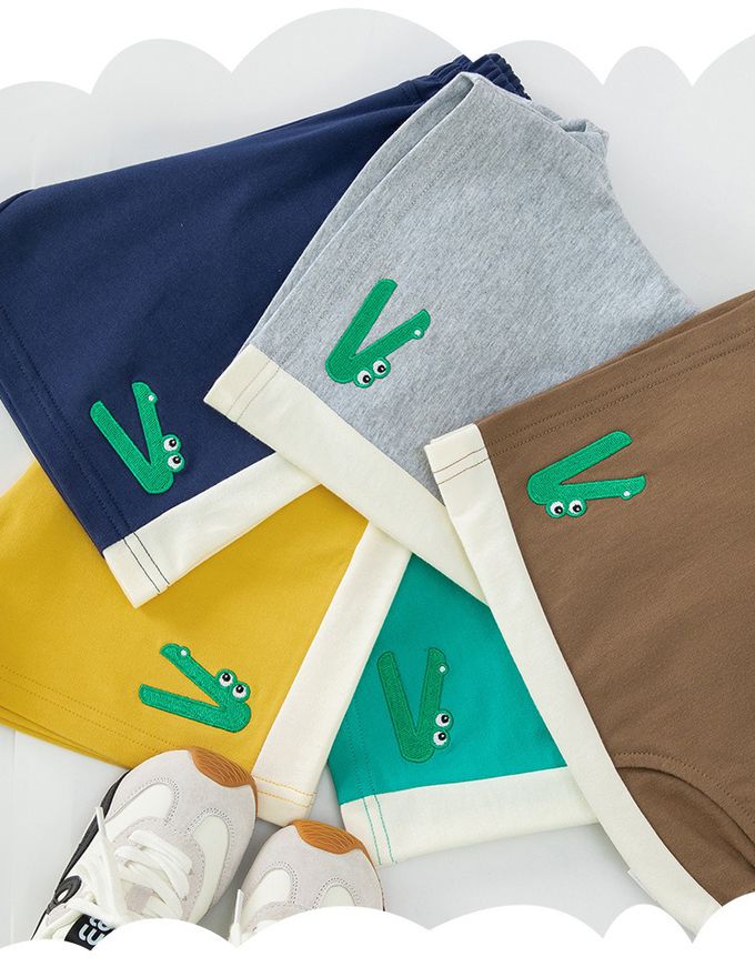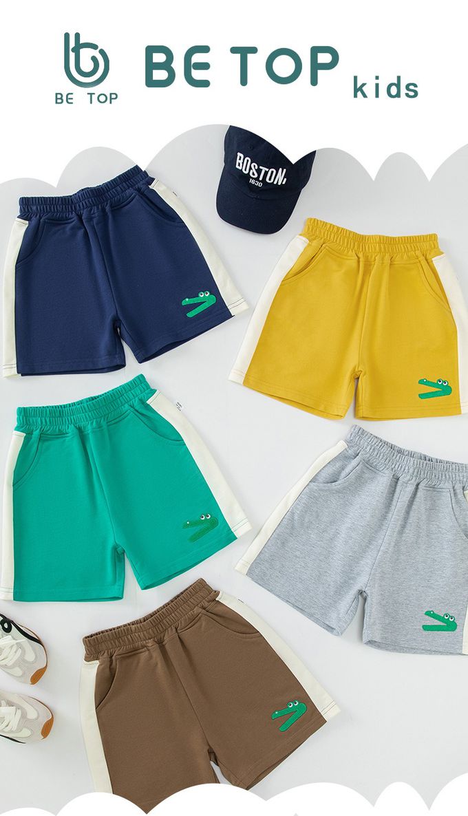 BE TOP - 純棉休閒短褲-可愛鱷魚-咖色