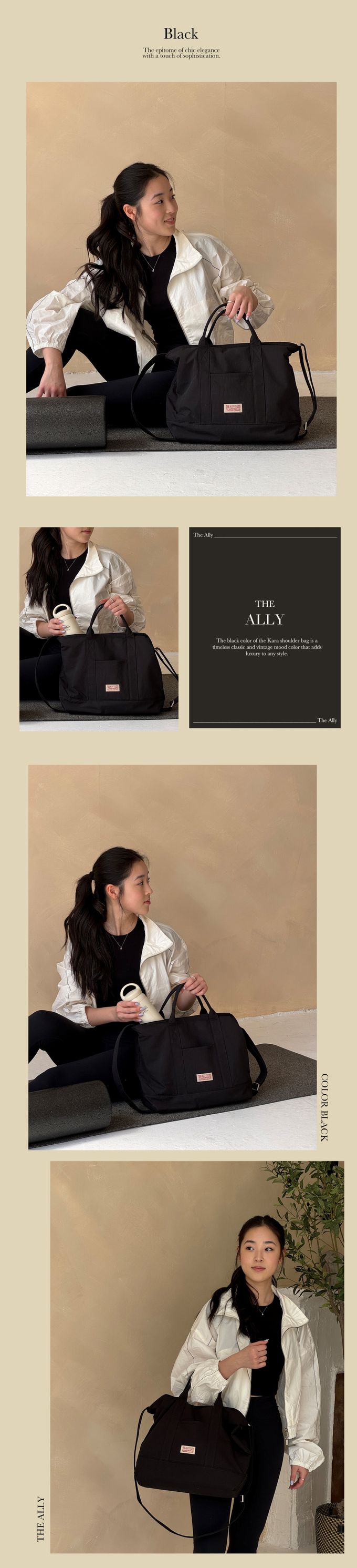 韓國 THEALLY - 小眾設計 (附小拉鍊包)大容量尼龍輕量拉鍊斜背包-黑